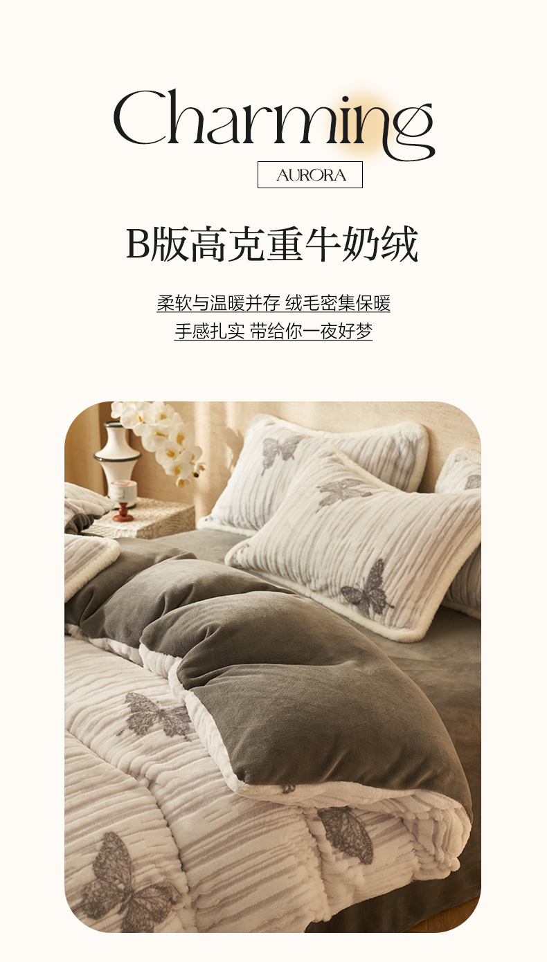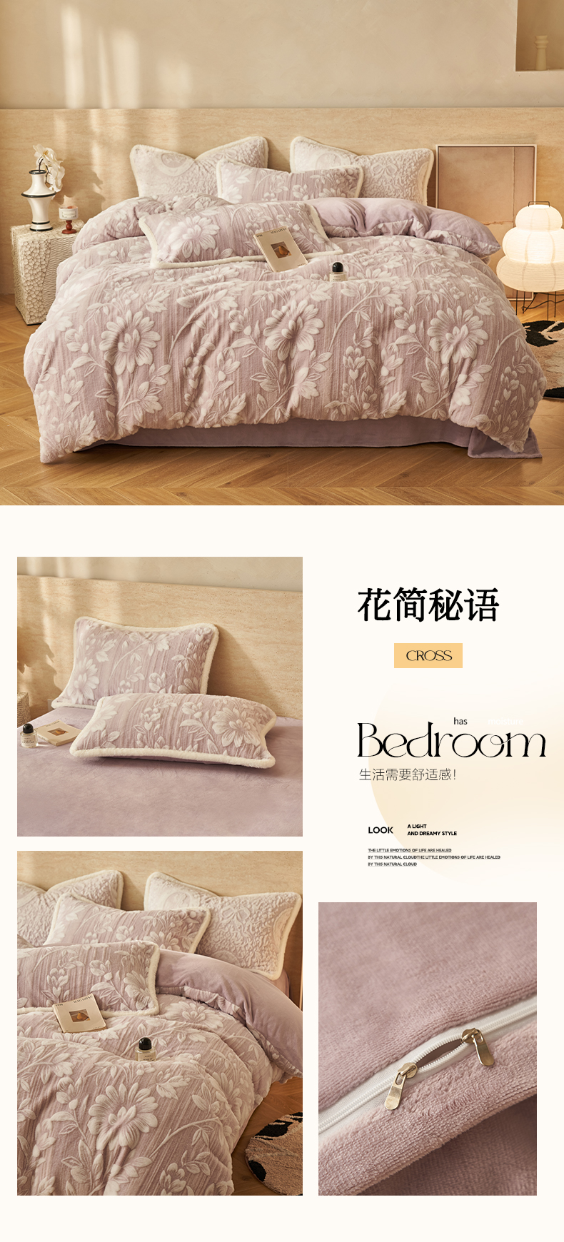 当前位置: 91家纺网 > 商品网购 > 床品套件 > 四件套 > 雕花绒四件套 > 寐绸家纺 2025秋冬新款350g兔毛雕花牛奶绒四件套 花简秘语