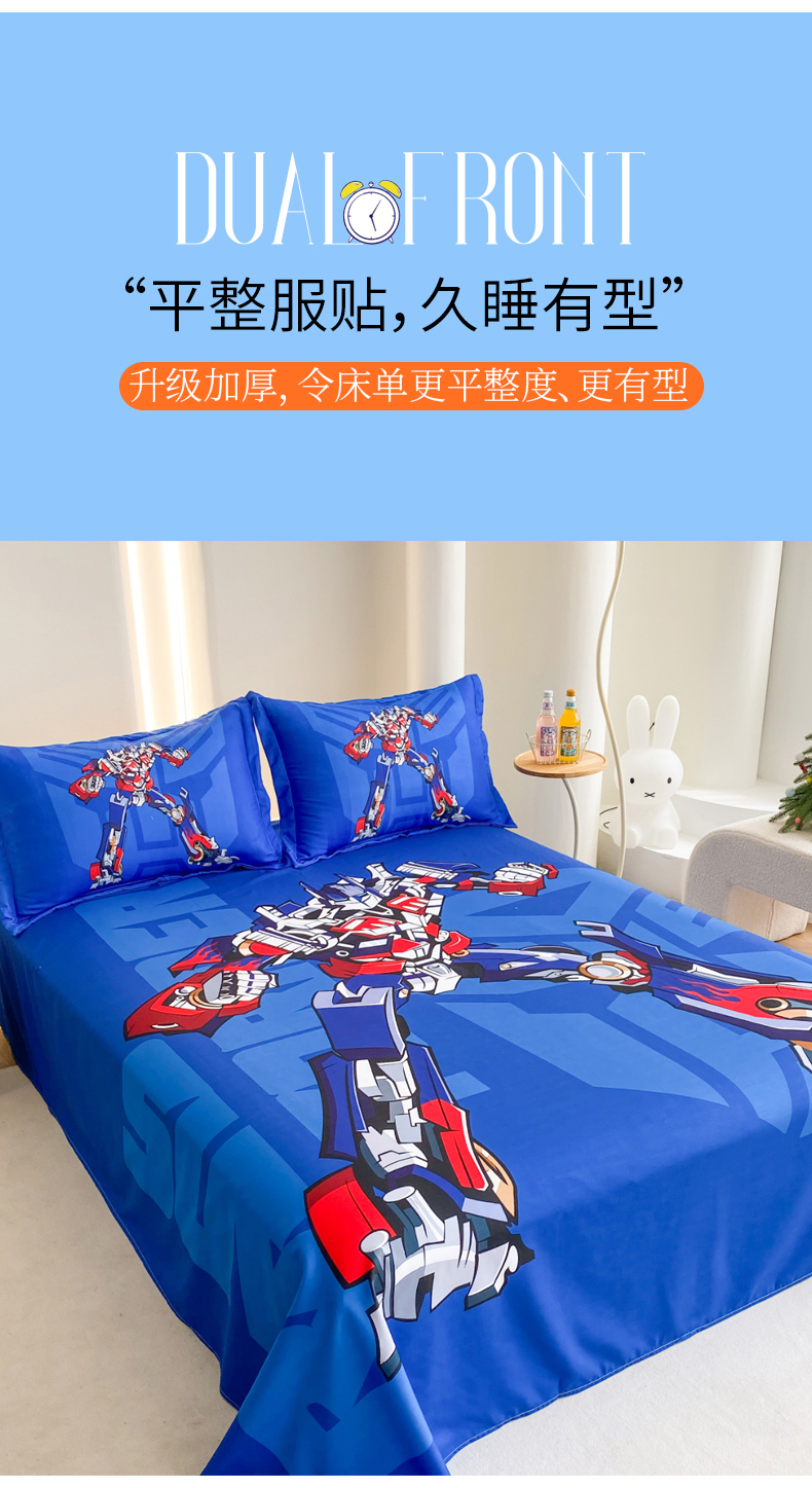 • 91家纺网 家纺一手货源 找家纺 一电 2025新款卡通床单单件被单学生宿舍被罩三件套单人儿童上下床床单-第二批 擎天柱