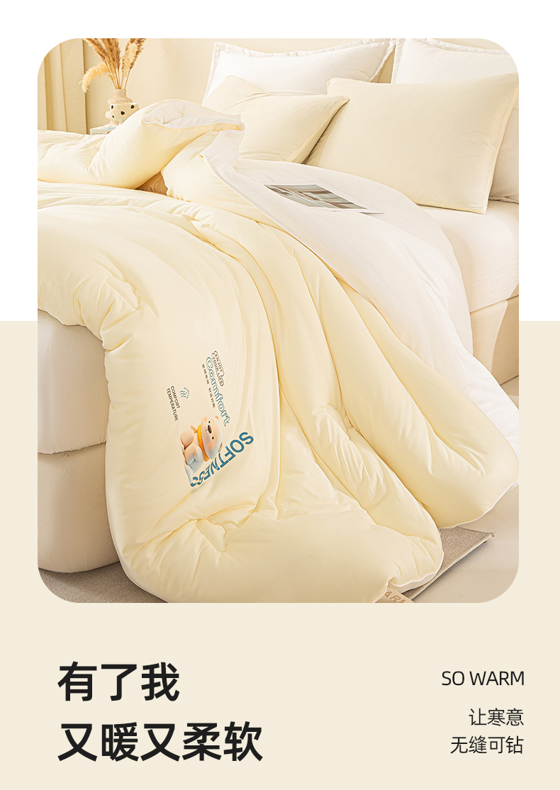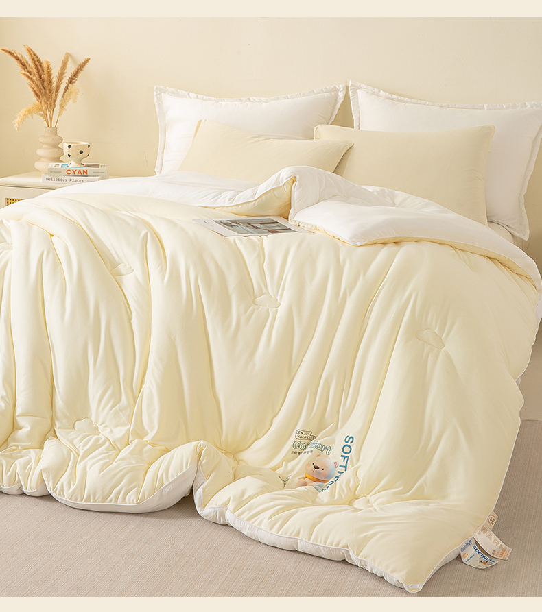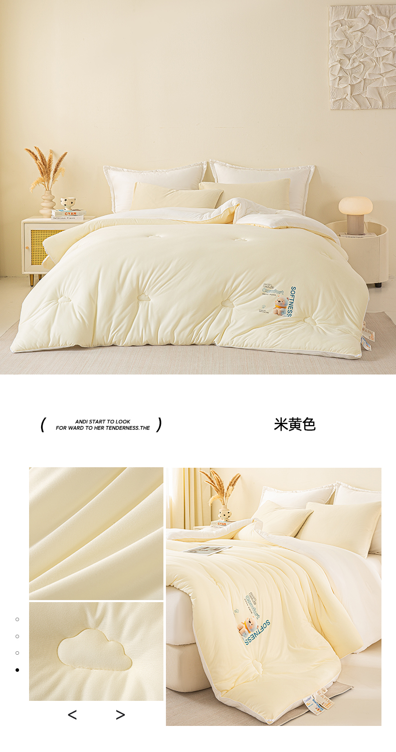 • 91家纺网 家纺一手货源 找家纺 天瑜家纺 2025新款纯色牛奶丝针织冬被被子被芯 米黄色
