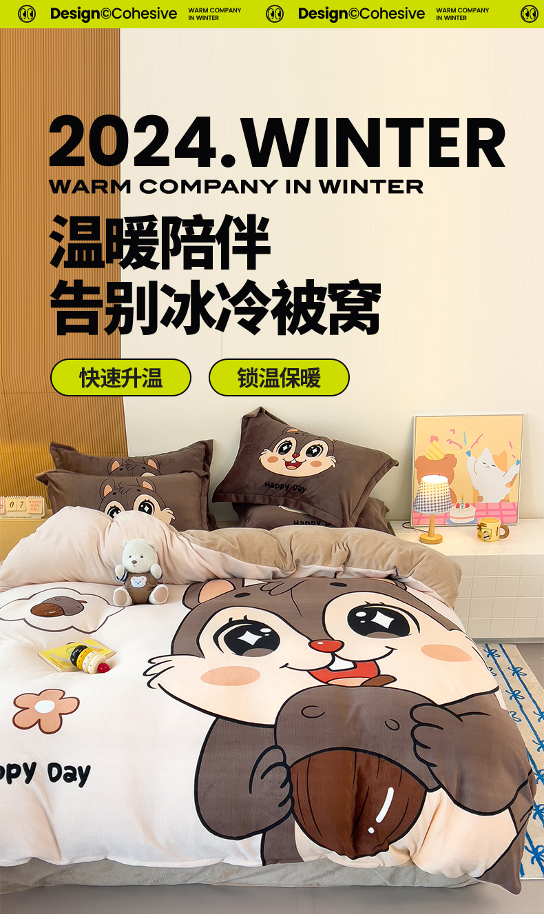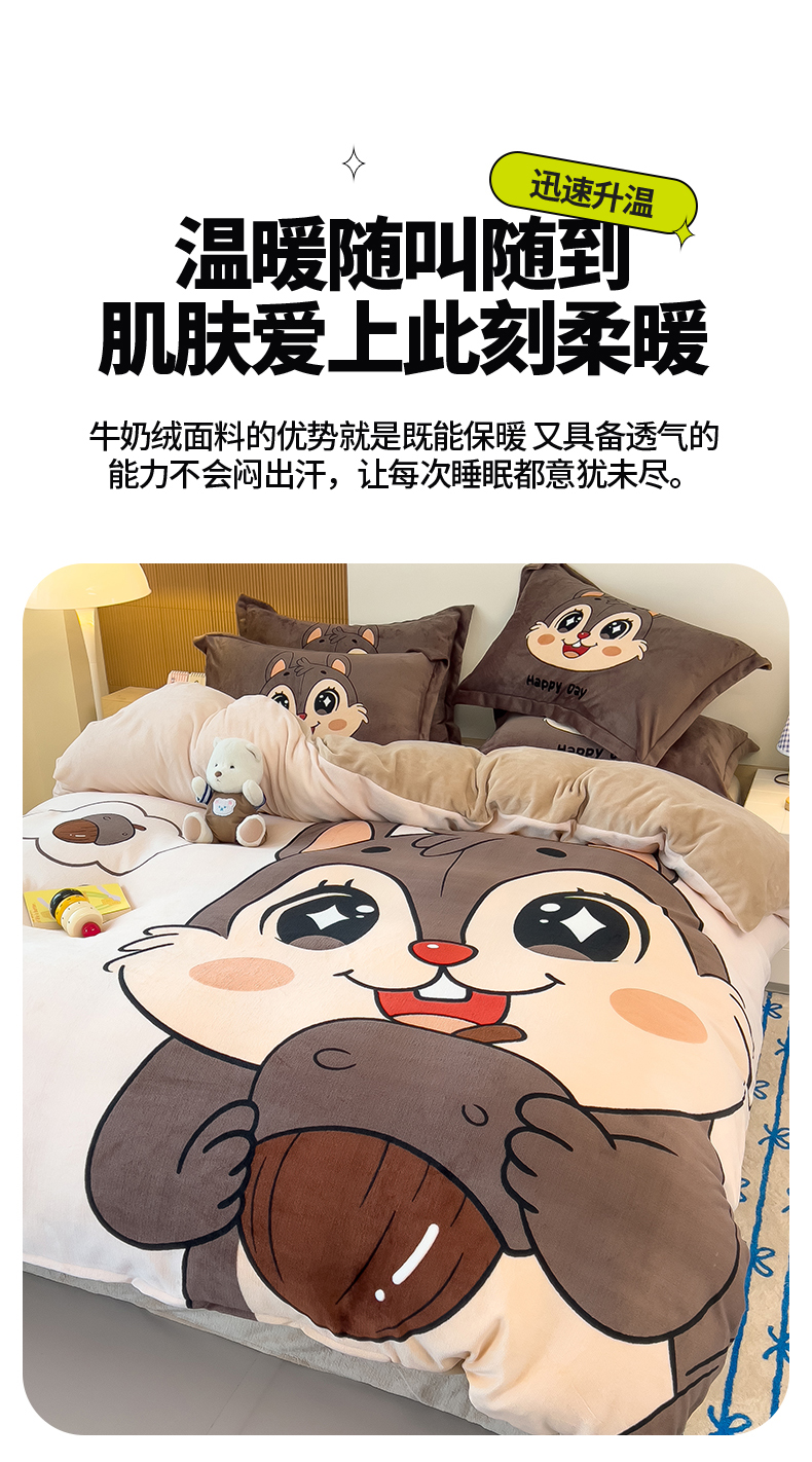 (总)福来临家纺 2025牛奶绒大版卡通四件套