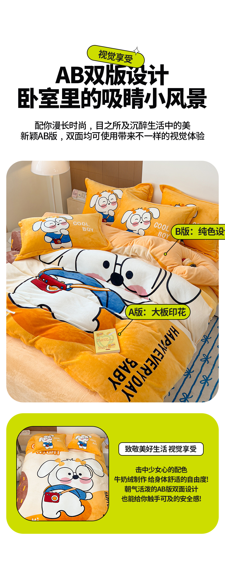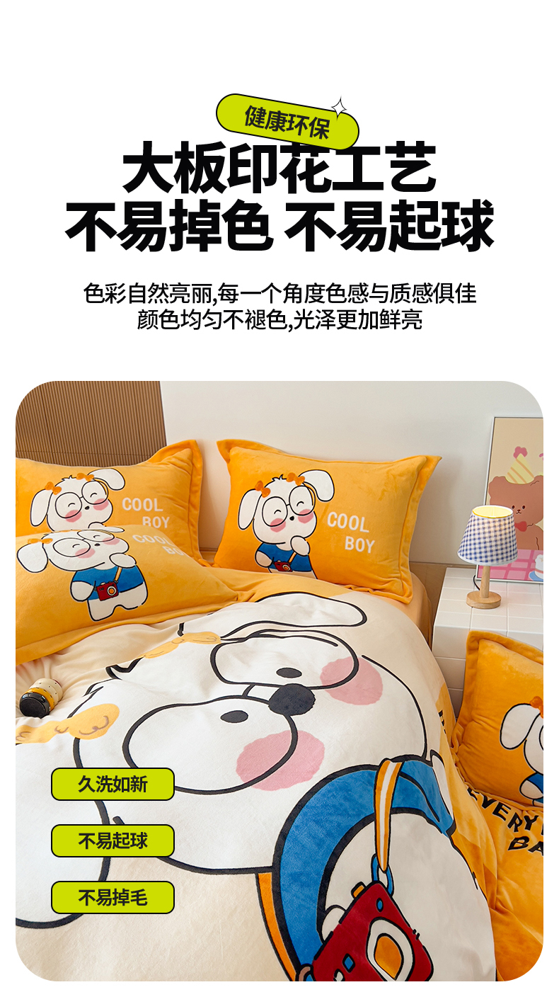 商品名称:福来临家纺 2025牛奶绒大版卡通四件套 眼镜小崽
