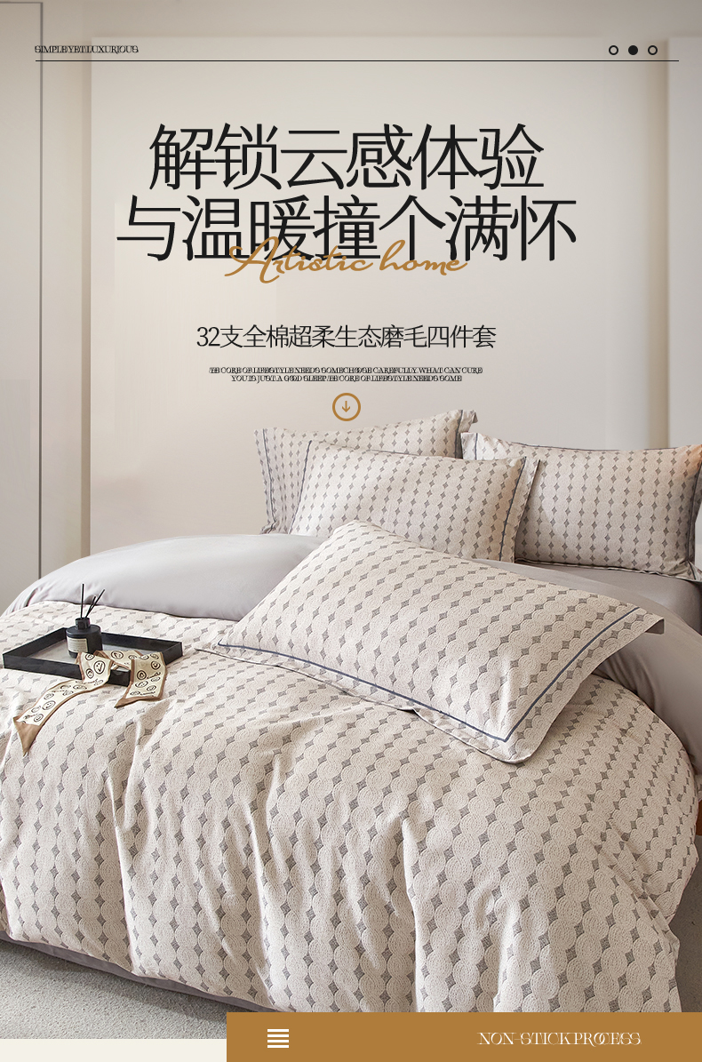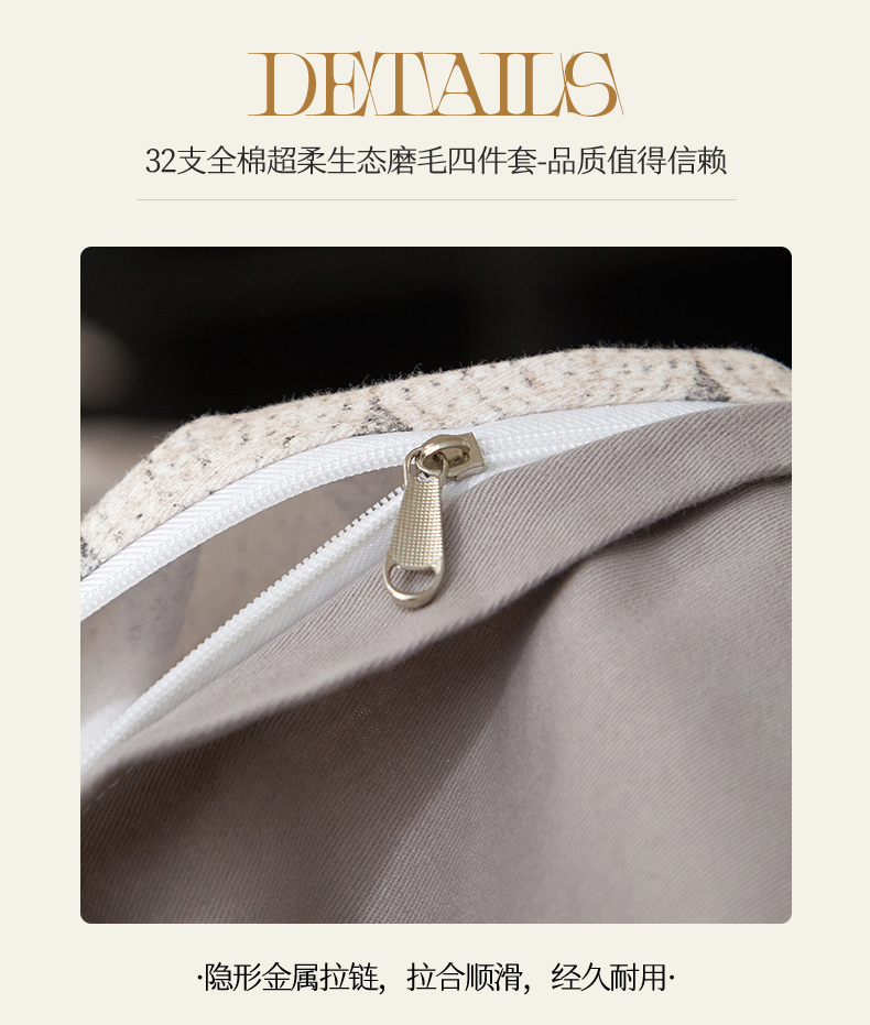商品名称:品乐家纺 2025新款32支超柔生态磨毛四件套 拾光-灰