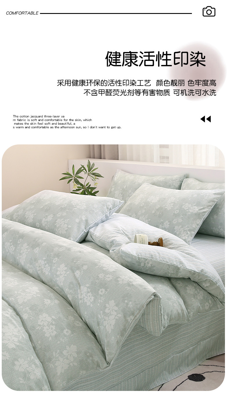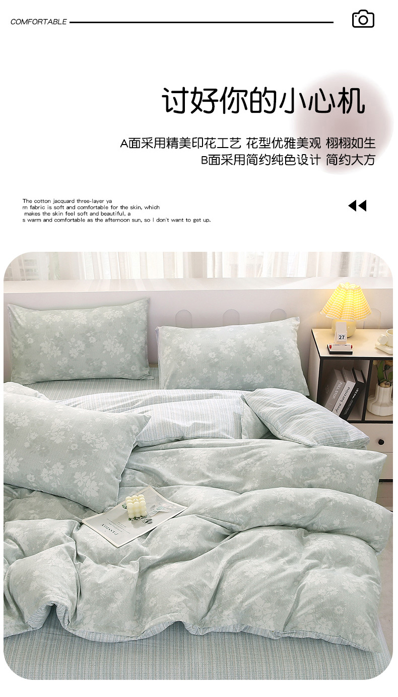 织写 2025新款A类双层纱针织棉四件套床单四件套床单四件套小清新四件套 琉璃,琉璃