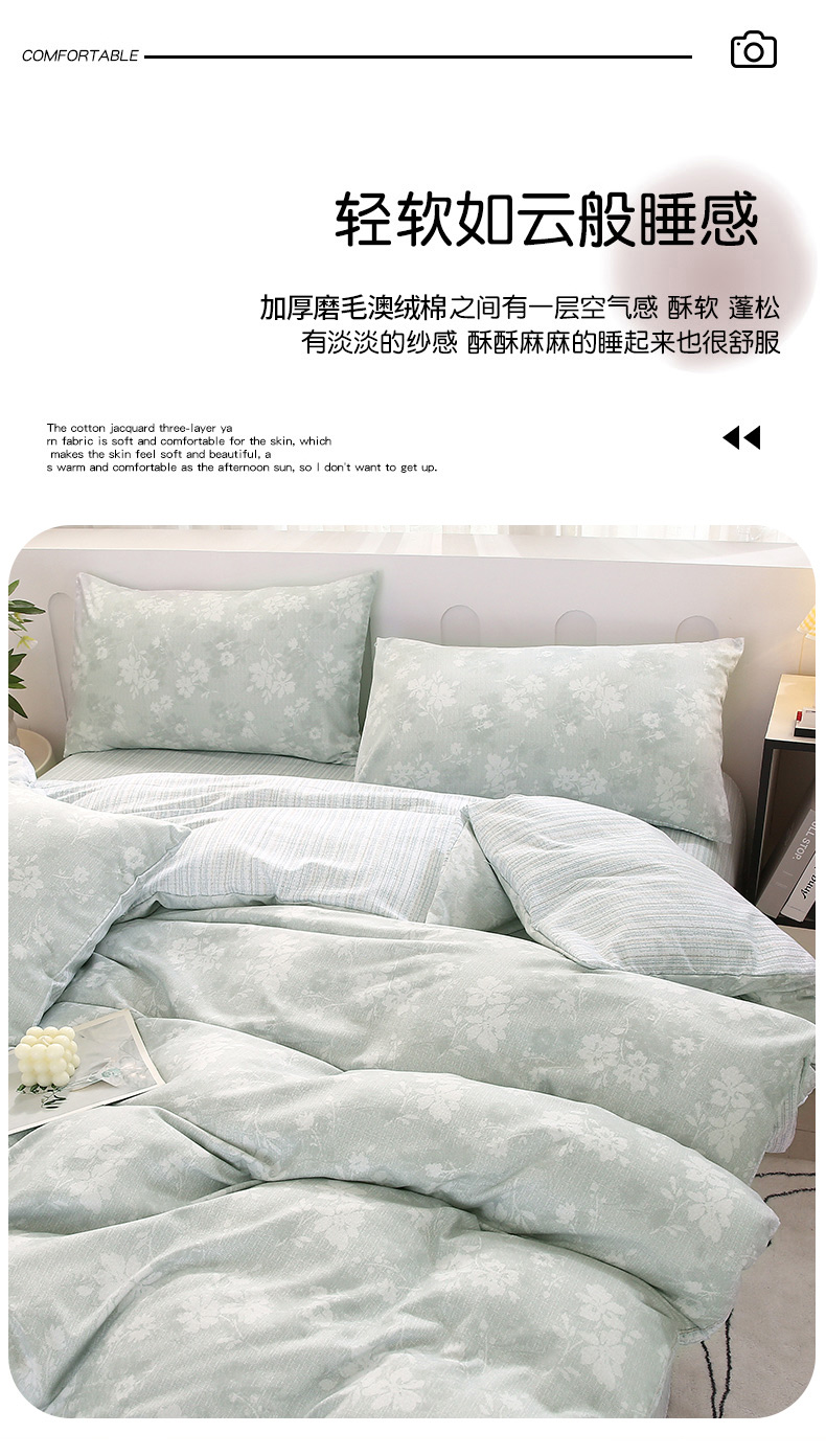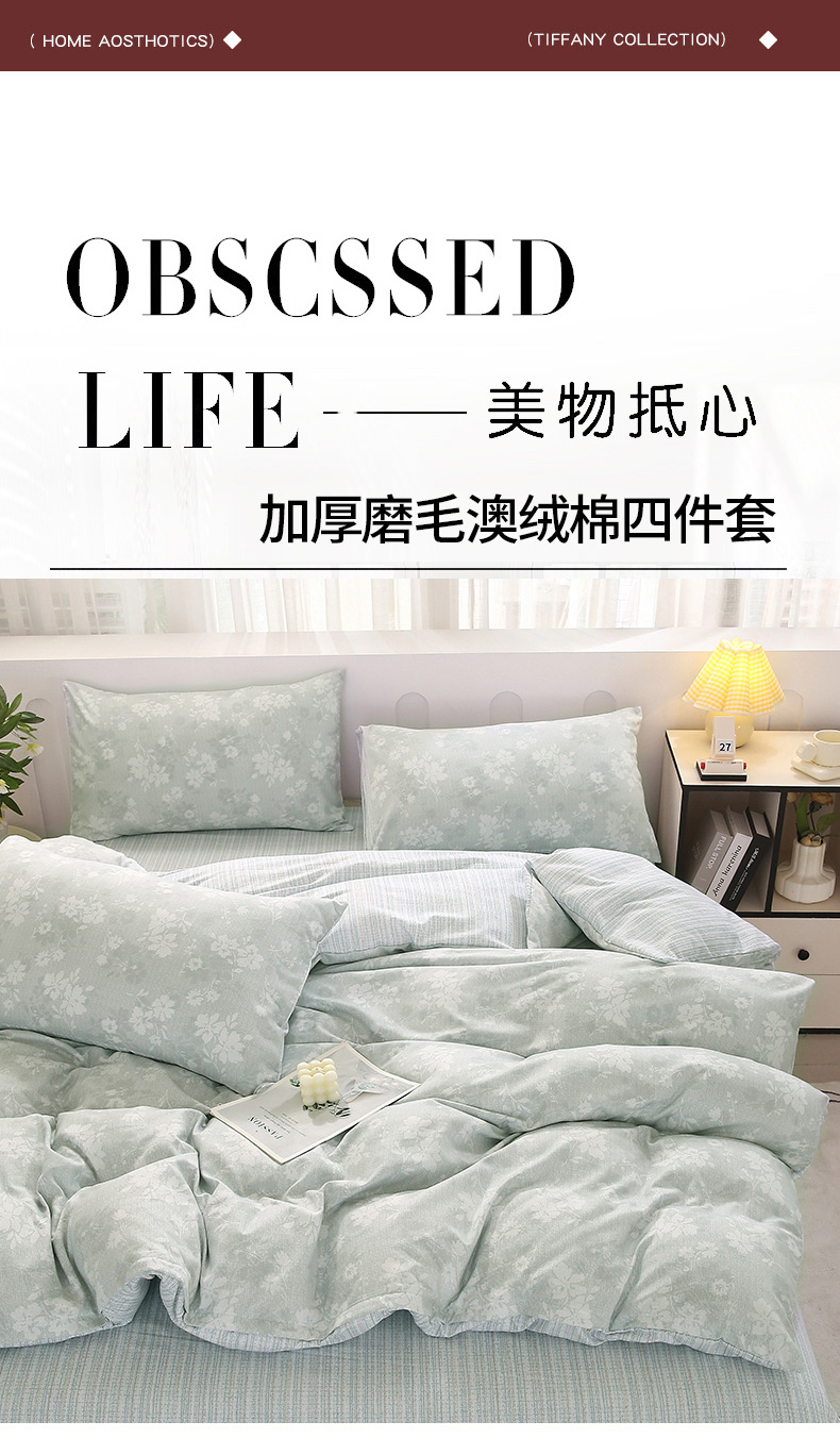 (总)织写 2025新款加厚磨毛澳绒棉四件套,开心小熊,贝莉浅绿,朵拉,繁华,欢喜时光,快乐魔法,美式田园-粉,贝莉浅蓝,美式田园-蓝灰,莫奈,幽香浪漫-黄,幽香浪漫-灰