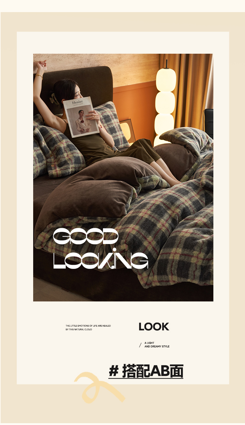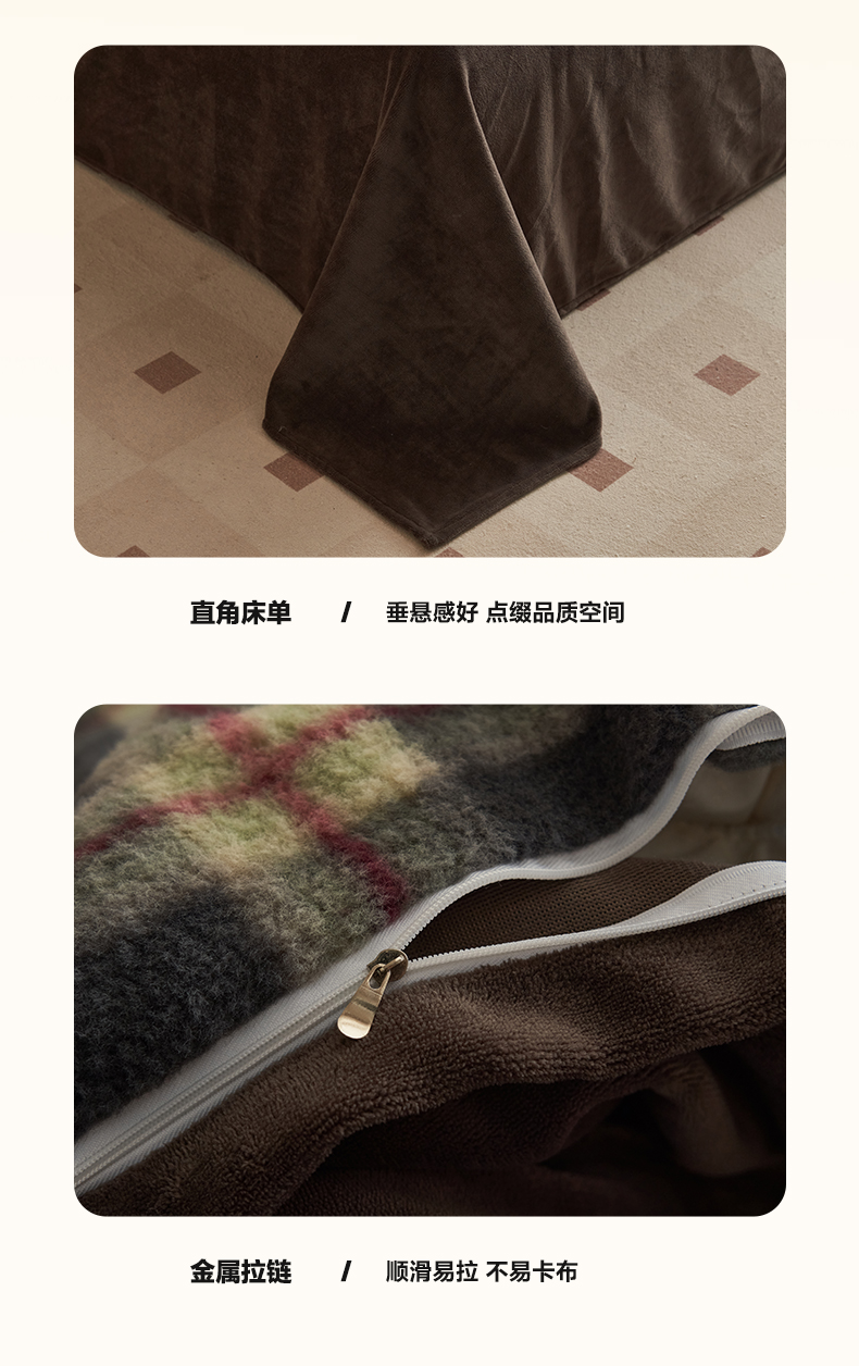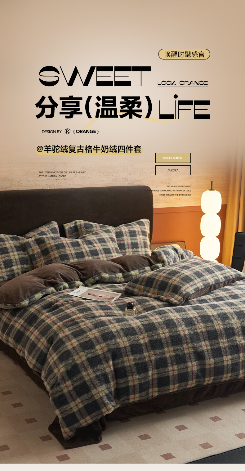 早晨家纺 2025新款230g羊驼绒复古格牛奶绒四件套 雾里青格