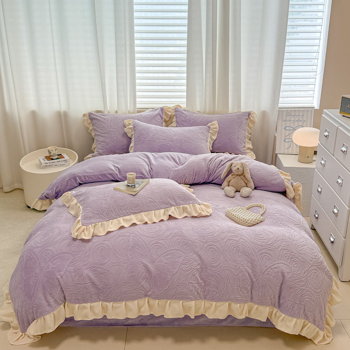 (总)懒猫家纺 2025新款亲肤舒适牛奶绒四件套-可可小姐系列,可可小姐-瓷白,可可小姐-水粉