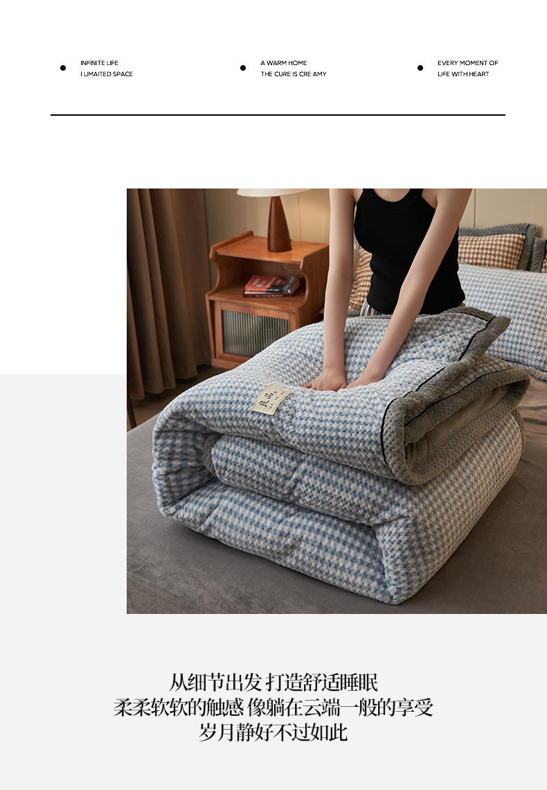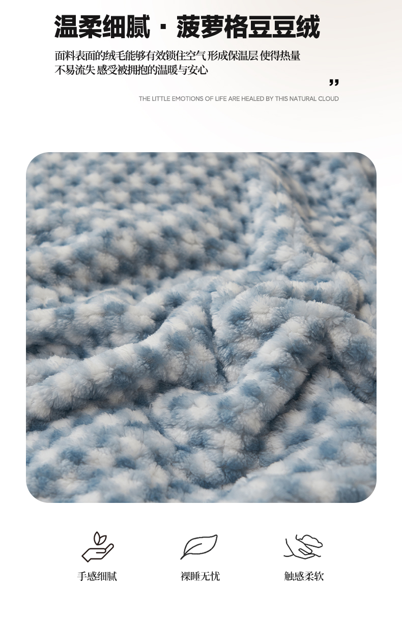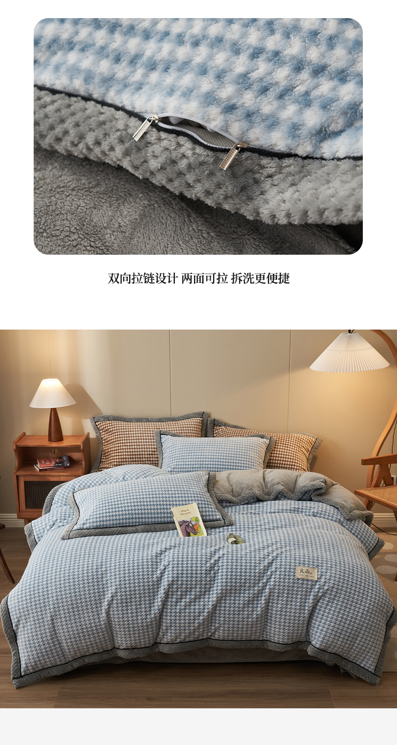 商品名称:早晨家纺 2025新款豆豆款菠萝格提花四件套 豆豆绒-小格蓝