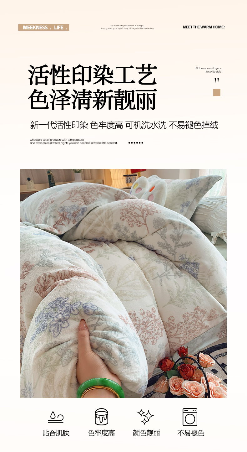 商品名称:莱豫家纺 2025新款加厚牛奶绒三件套四件套保暖不静电 幽兰花谷