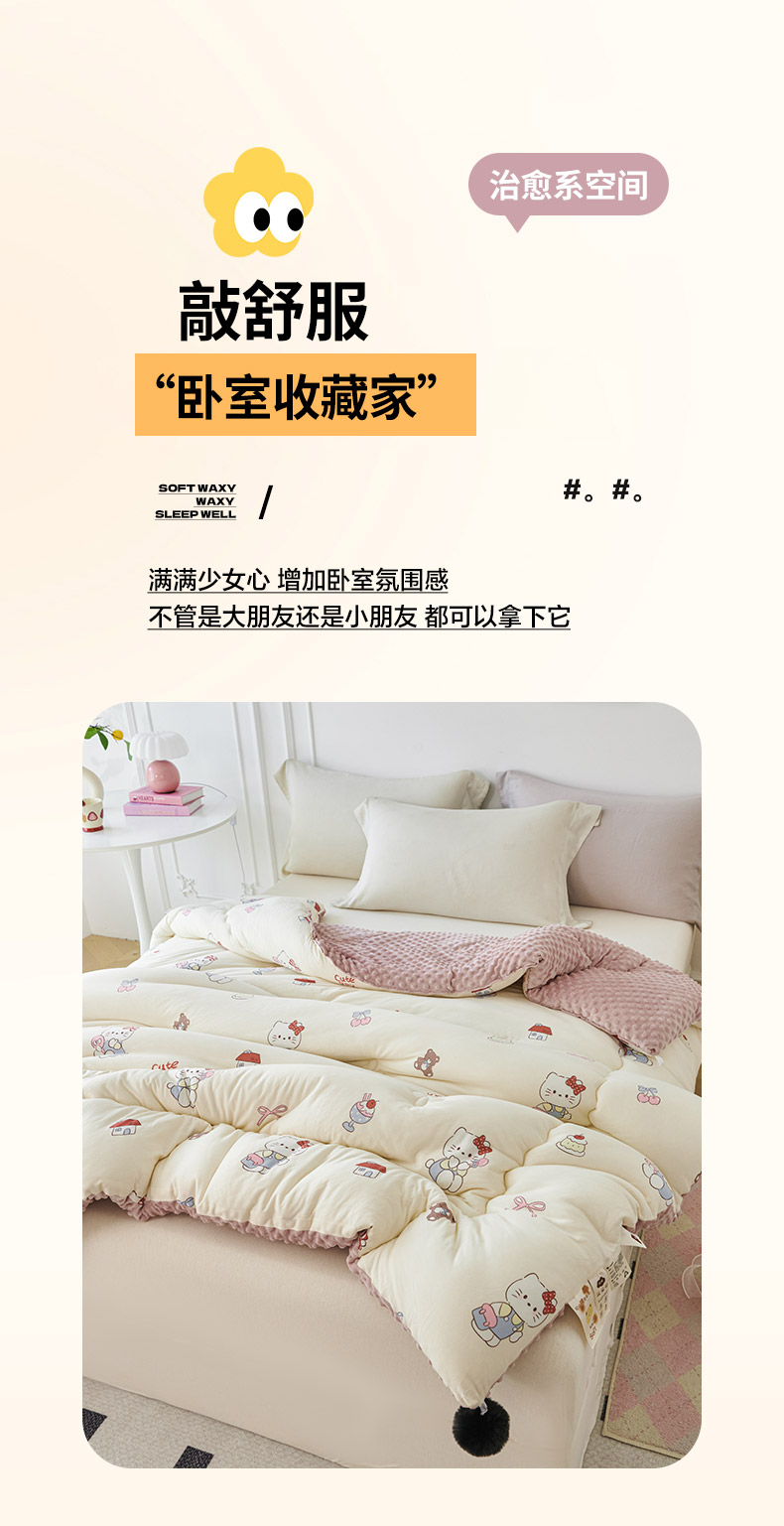 (总)缔锦家纺 2025新款小版卡通豆豆被被子被芯,粉兔兔,乖乖喵,蓝布布,幸运丫,熊熊咖