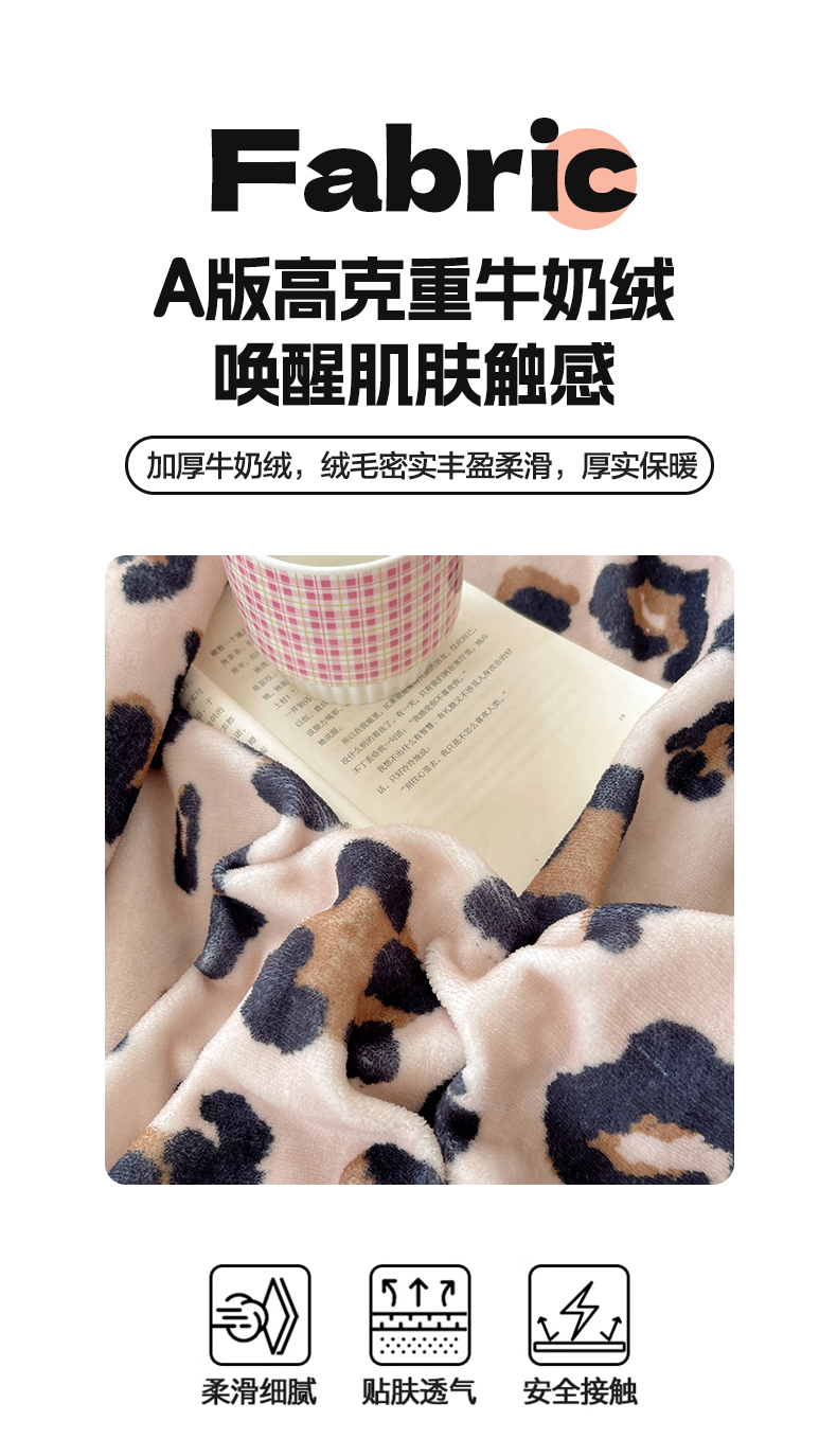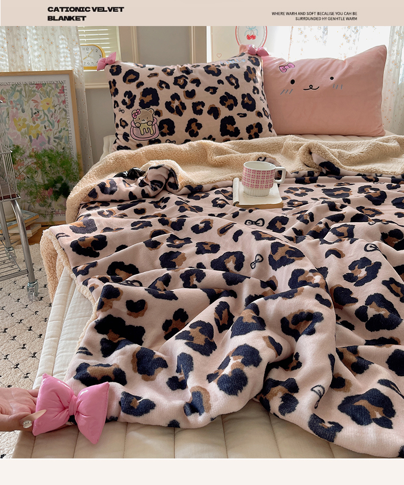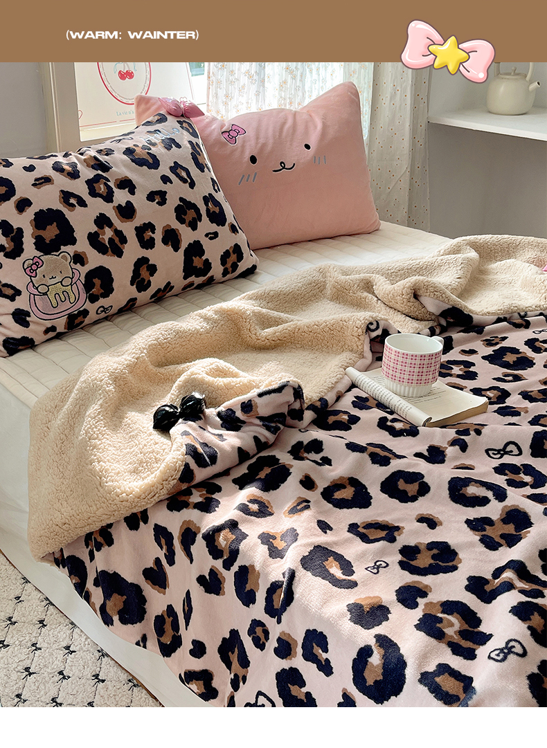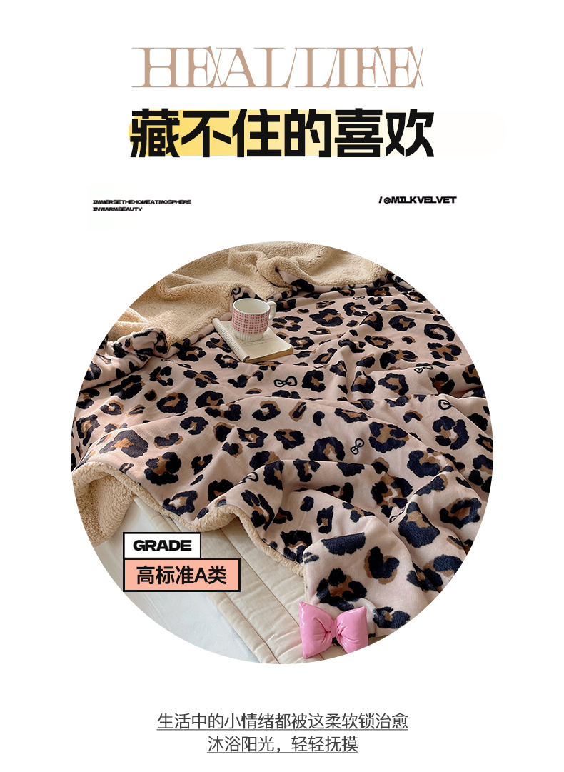 轻奢坊 2025新款博主风豹纹牛奶绒羊羔绒毛毯 毯子-星星