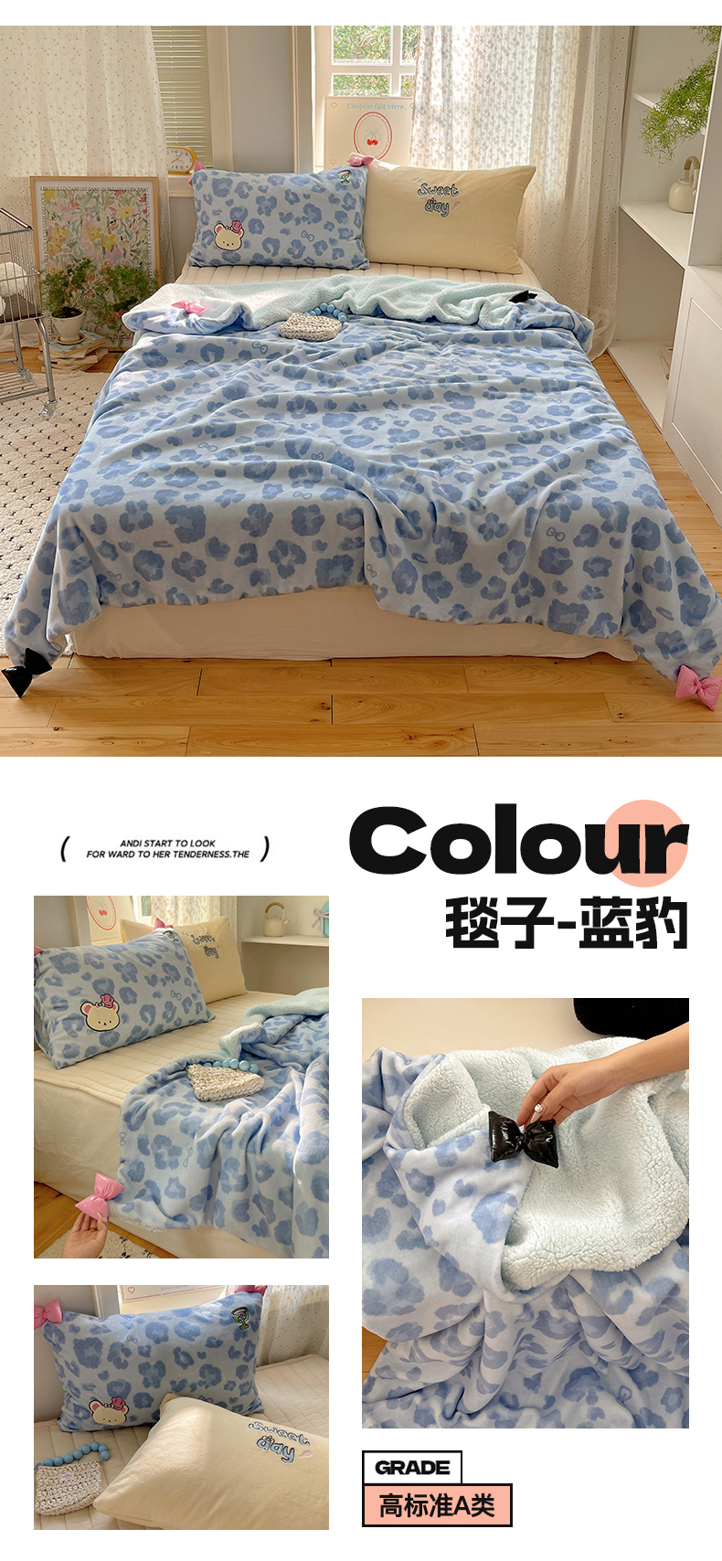 商品名称:轻奢坊 2025新款博主风豹纹牛奶绒羊羔绒毛毯 毯子-星星