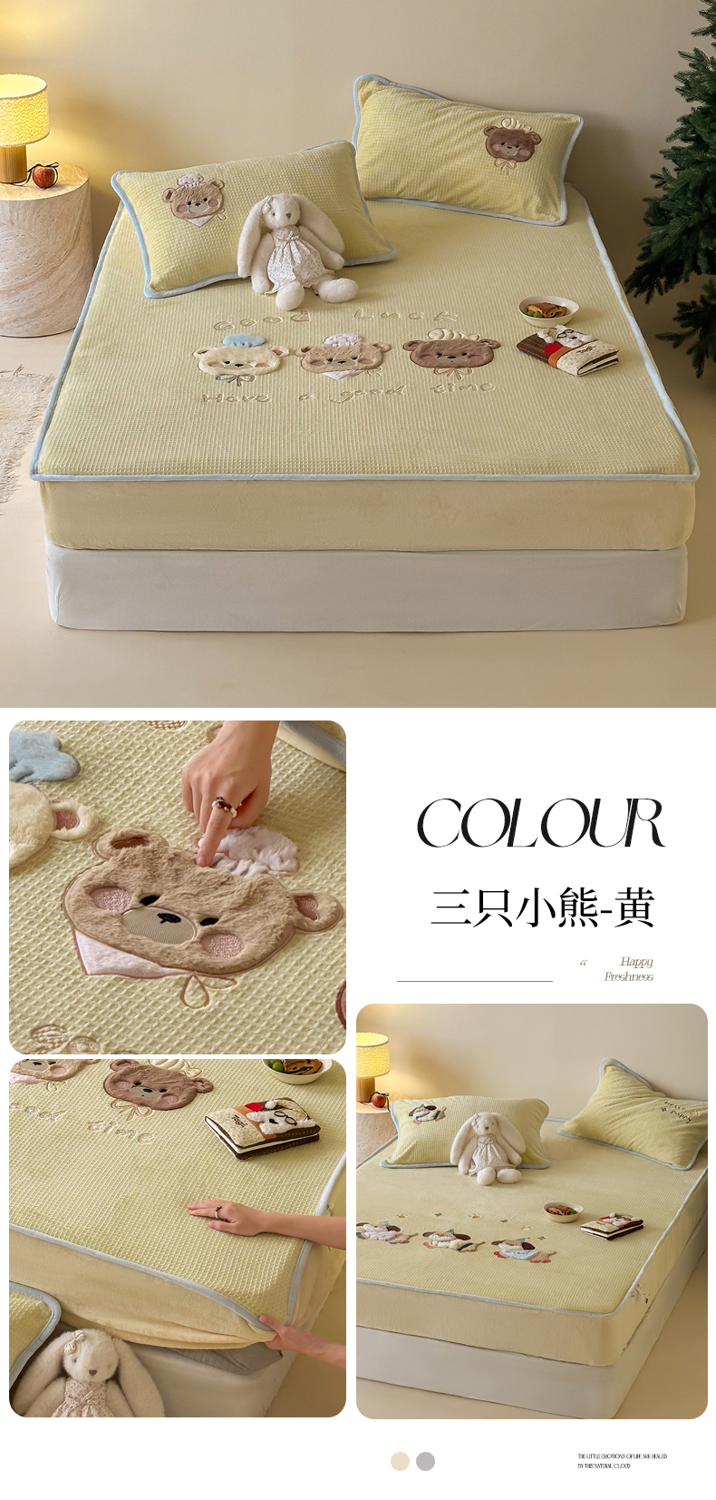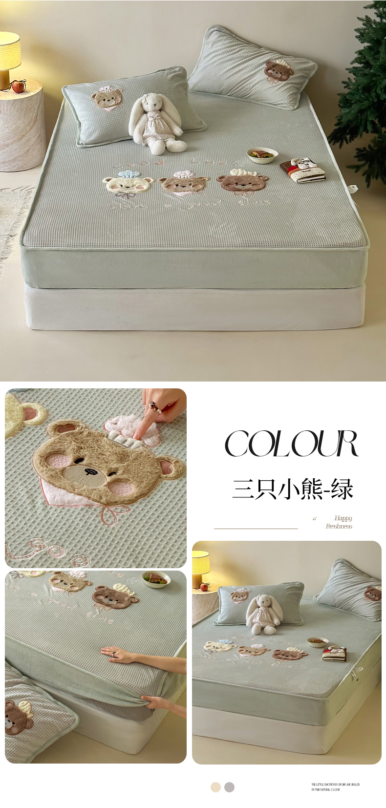 (总)Sweet dreams甜梦 2025新款高克重牛奶绒印花夹棉床笠圣诞款,冬日小猫粉,糖豆,雪人奇趣园