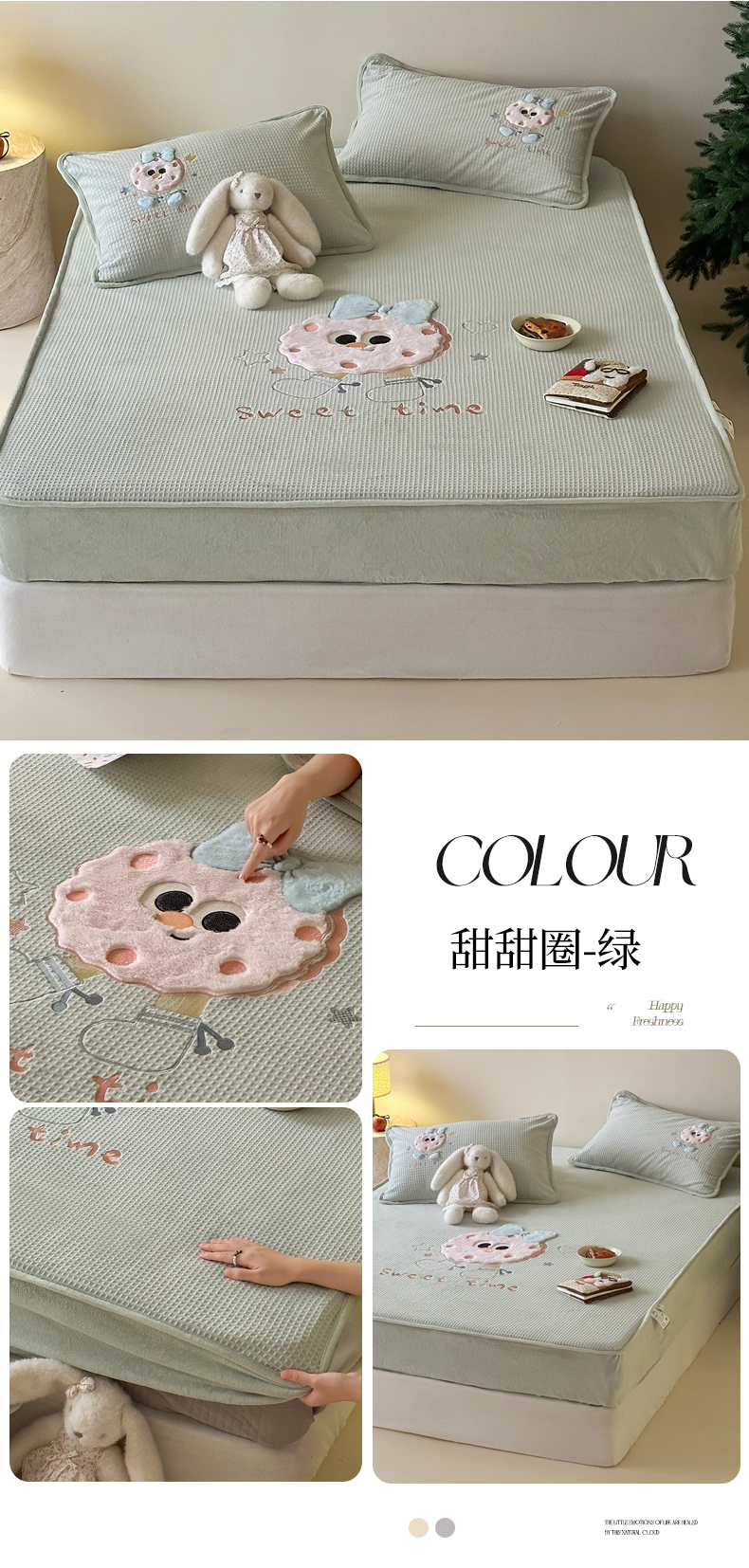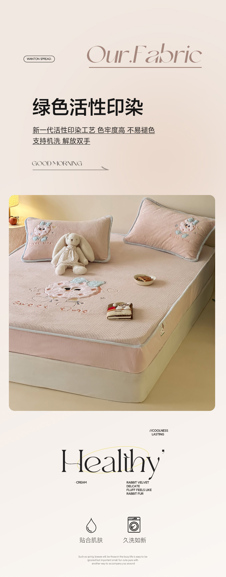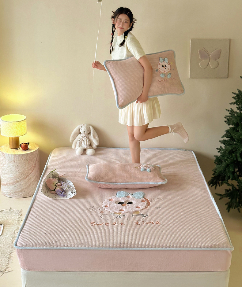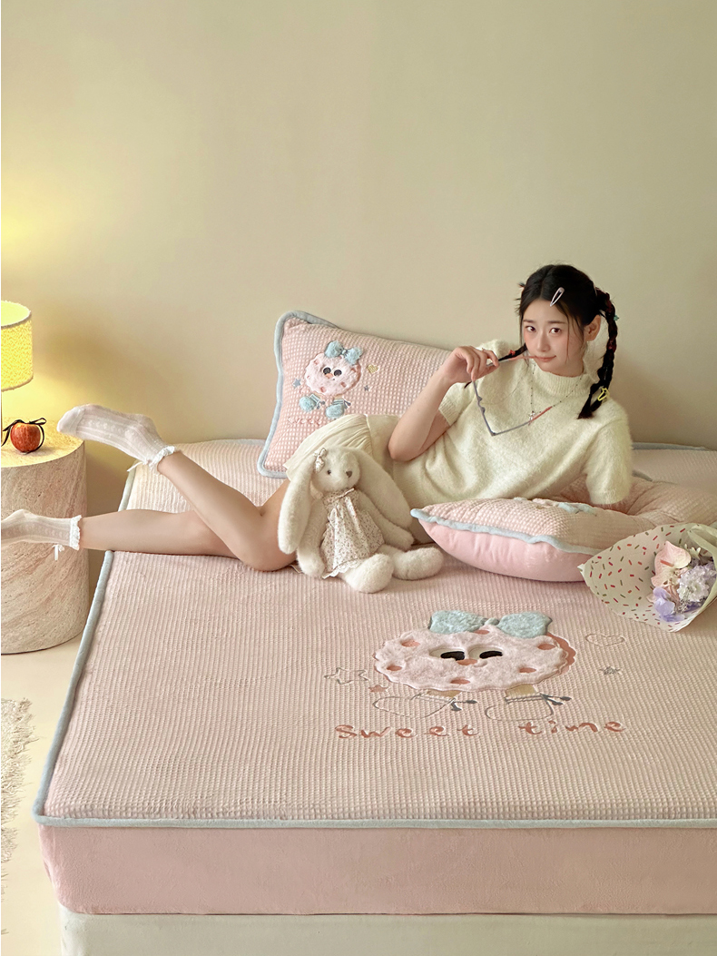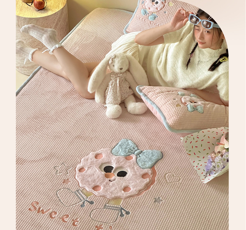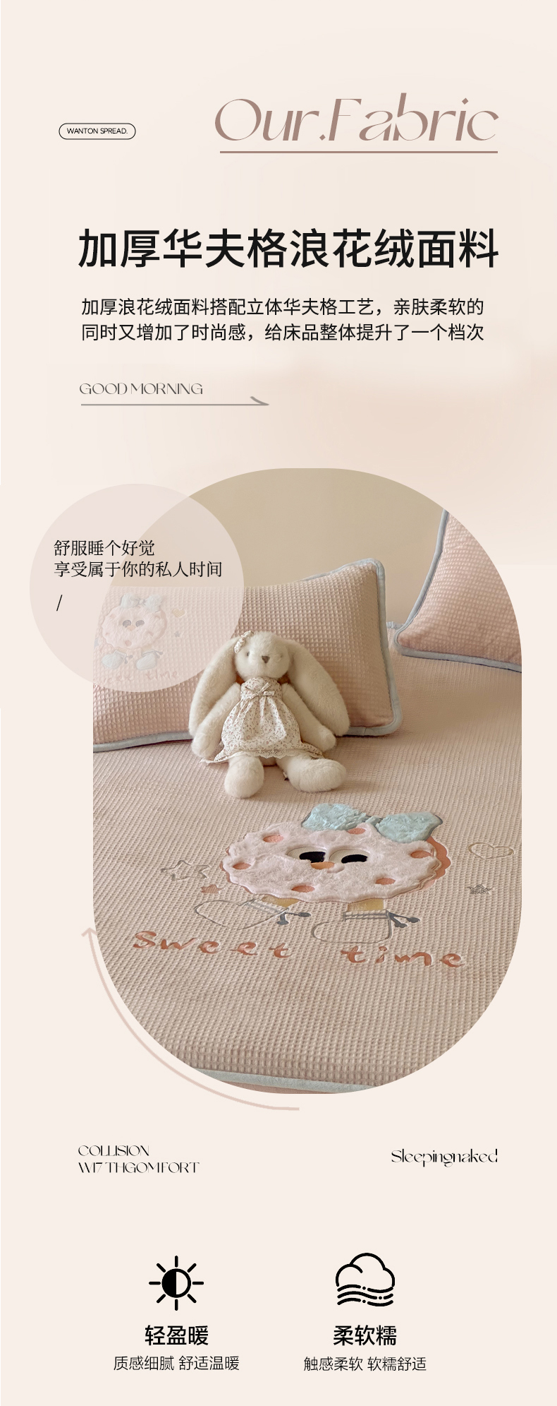 商品名称:Sweet dreams甜梦 2025新款华夫格绒兔毛贴布床笠三件套 甜甜圈粉