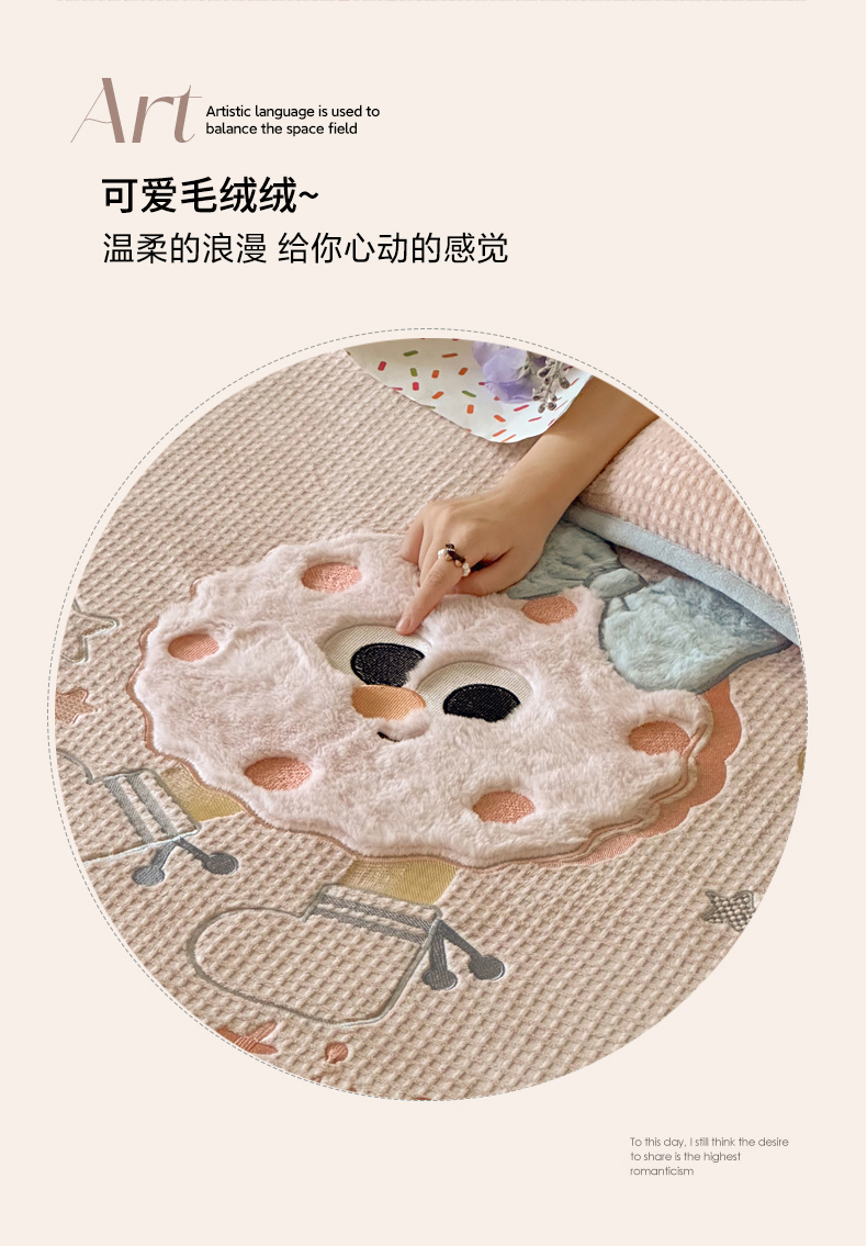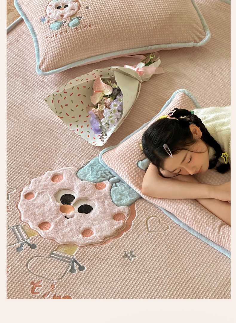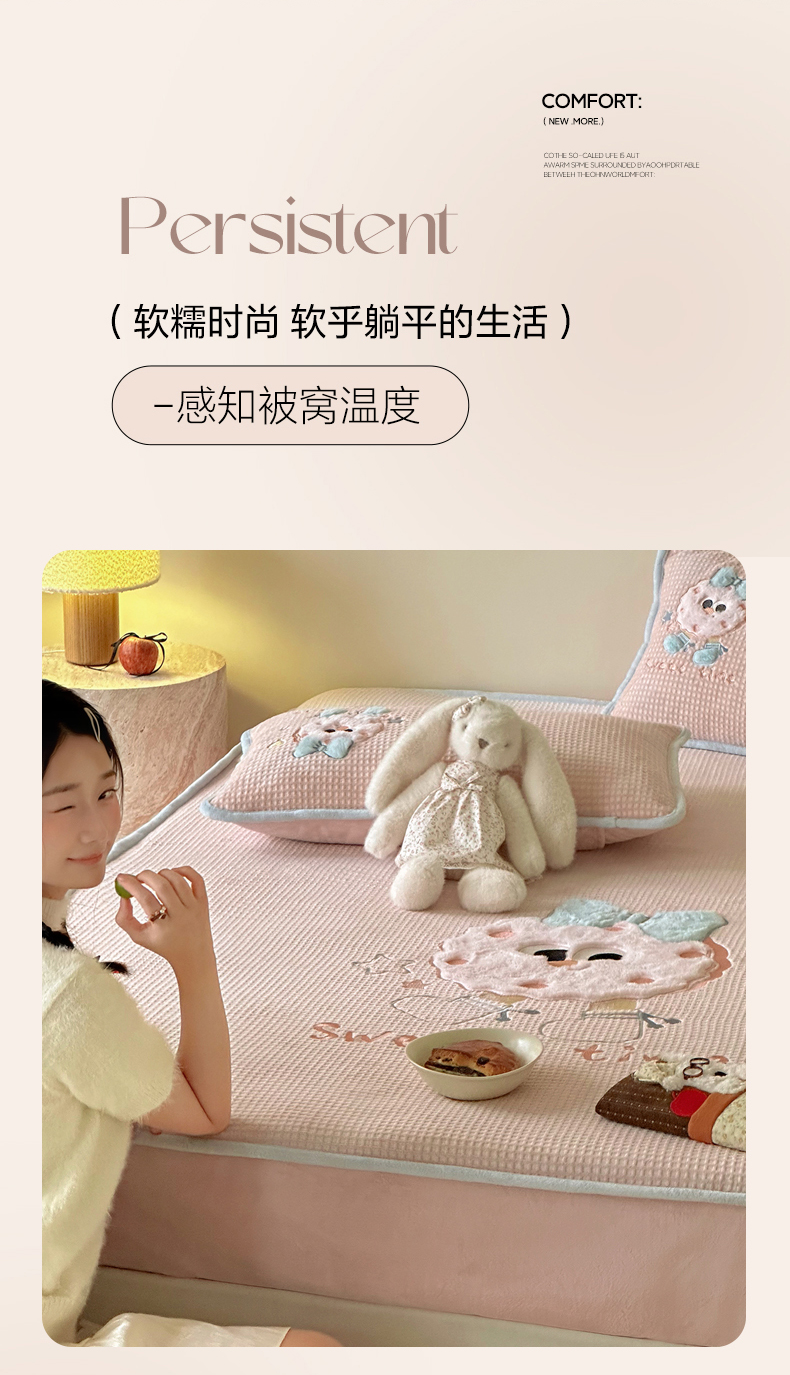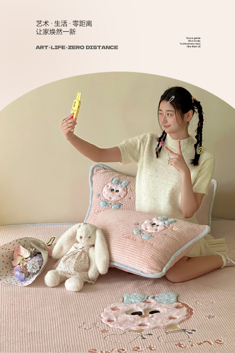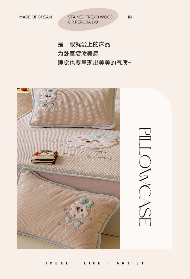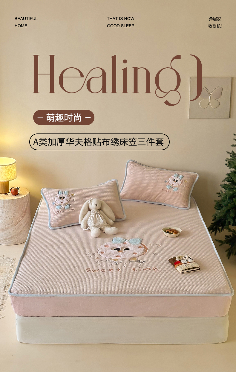 商品名称:Sweet dreams甜梦 2025新款华夫格绒兔毛贴布床笠三件套 甜甜圈粉