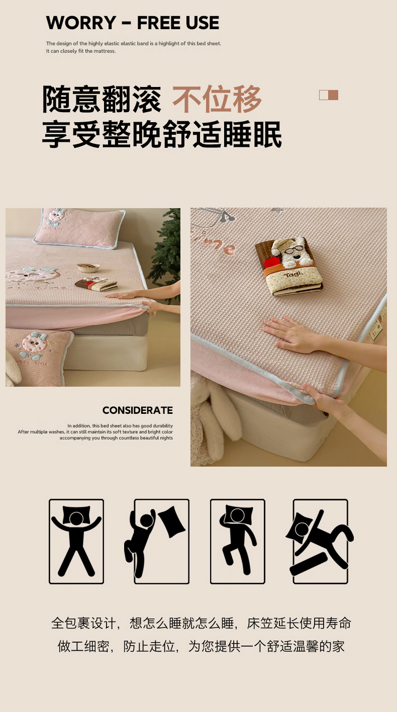 (总)Sweet dreams甜梦 2025新款高克重牛奶绒印花夹棉床笠圣诞款,冬日小猫粉,糖豆,雪人奇趣园