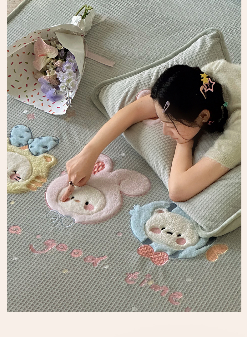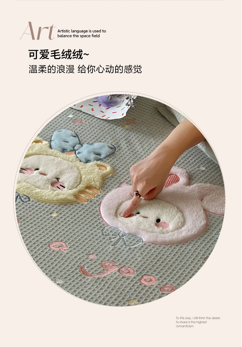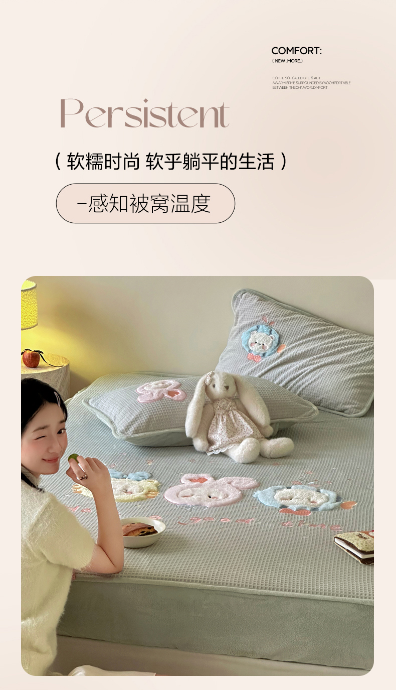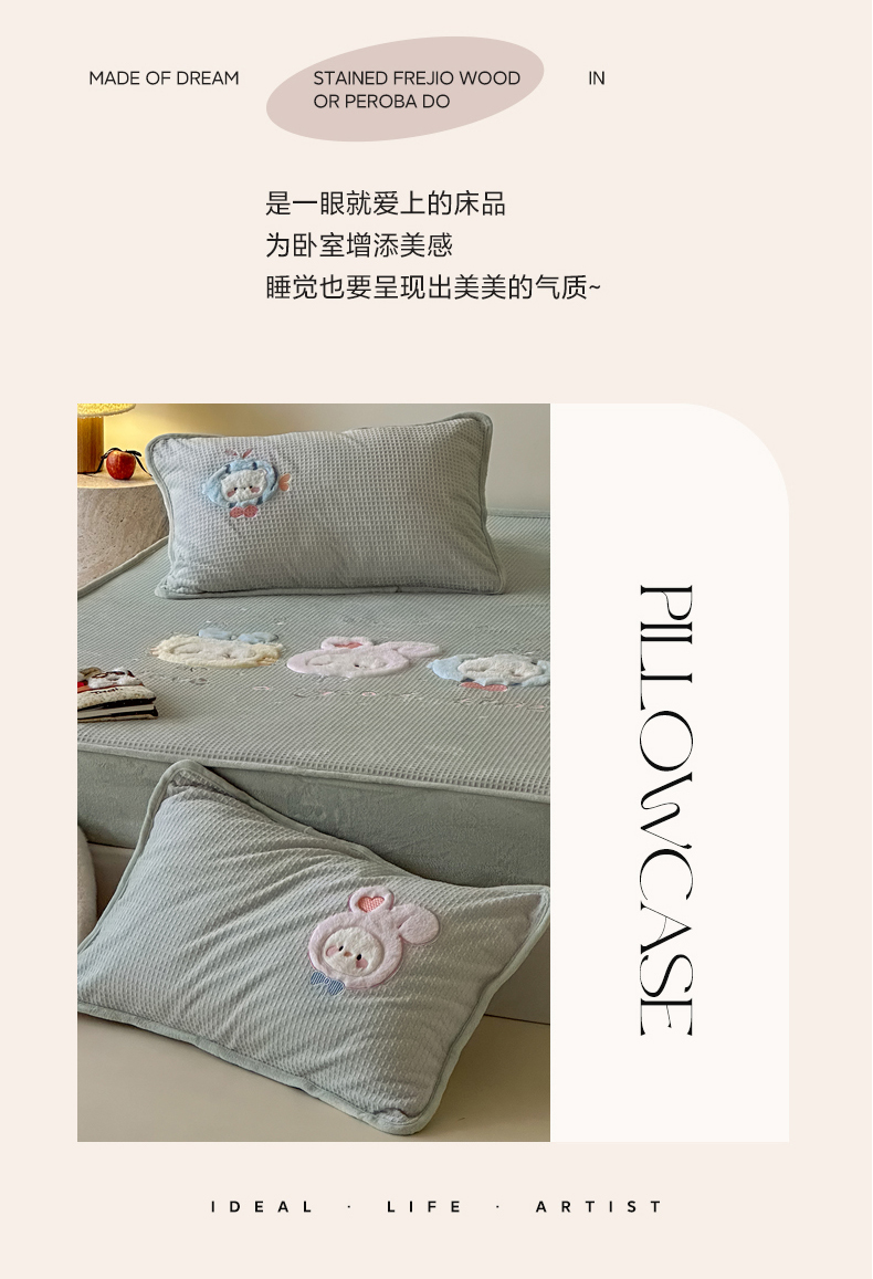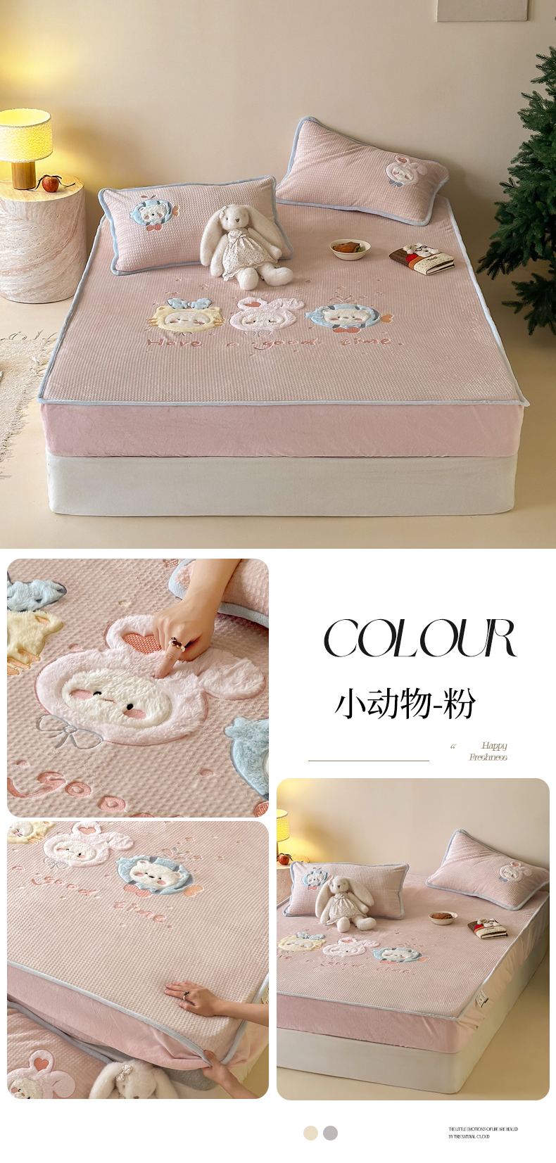 商品名称:Sweet dreams甜梦 2025新款华夫格绒兔毛贴布床笠三件套 小动物绿