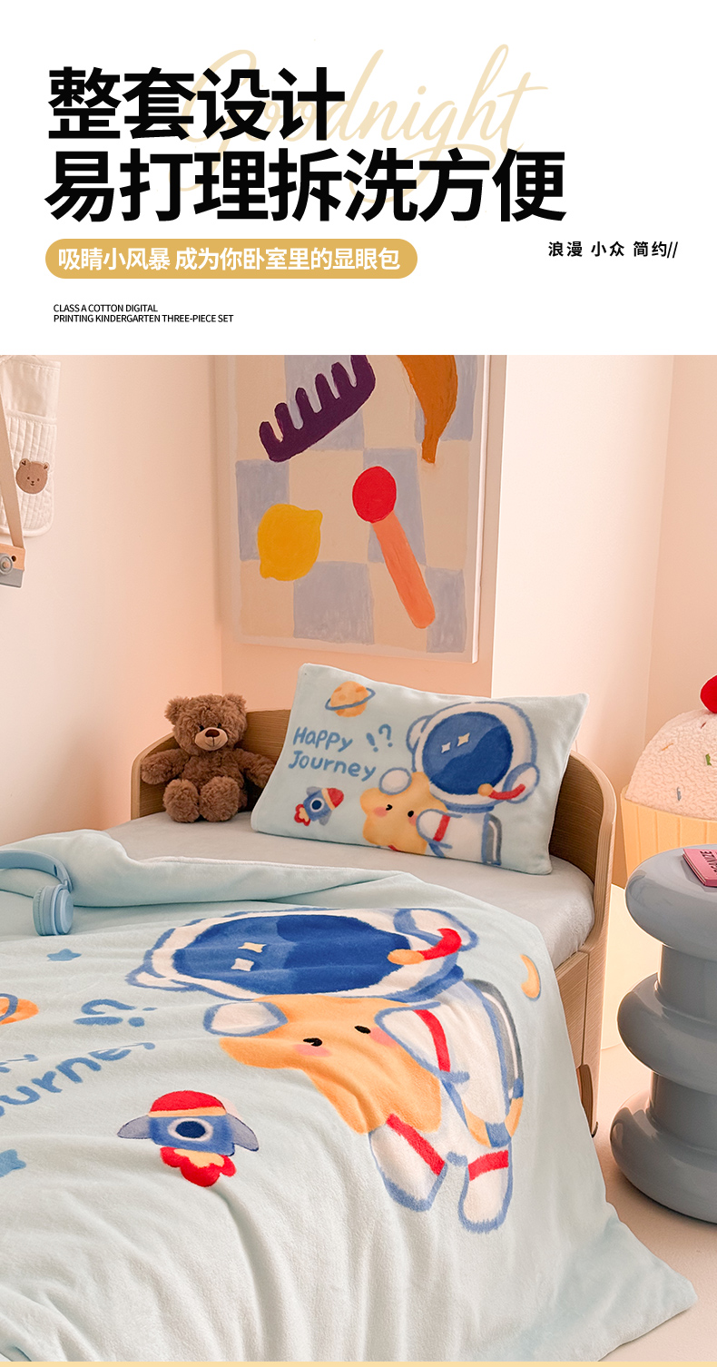当前位置: 91家纺网 > 商品网购 > 床品套件 > 三件套 > 嗨生活 2025新款牛奶绒数码印花原创大版卡通幼儿园套件幼儿园三件套 飞机恐龙