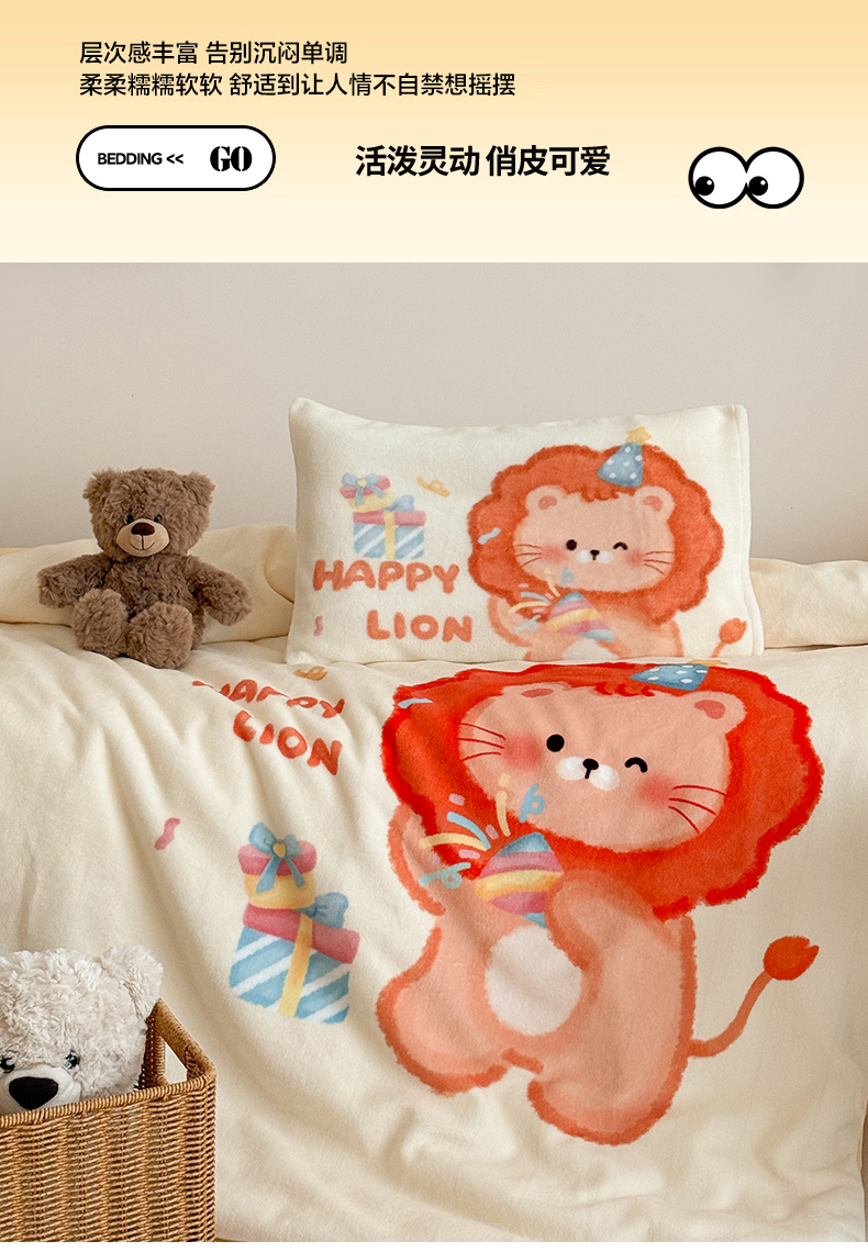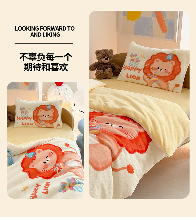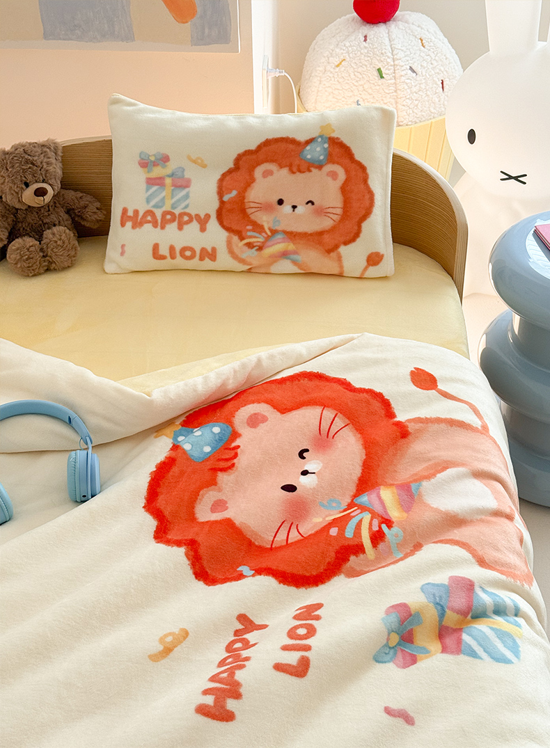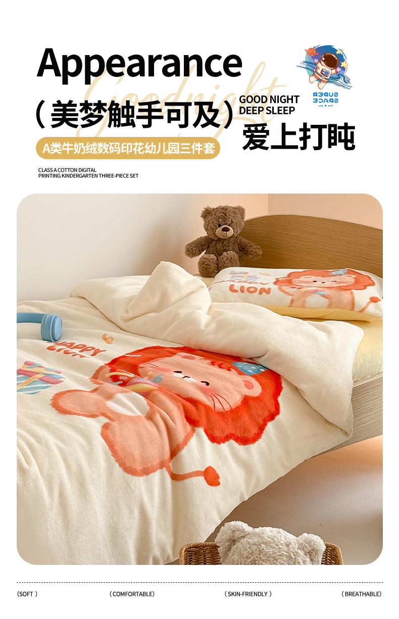 当前位置: 91家纺网 > 商品网购 > 床品套件 > 三件套 > 嗨生活 2025新款牛奶绒数码印花原创大版卡通幼儿园套件幼儿园三件套 萌小狮