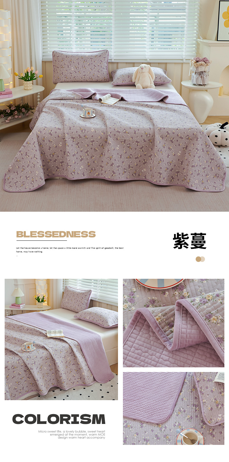 缔锦家纺 2025新款高克重全棉柔软绒床盖三件套 秋茗