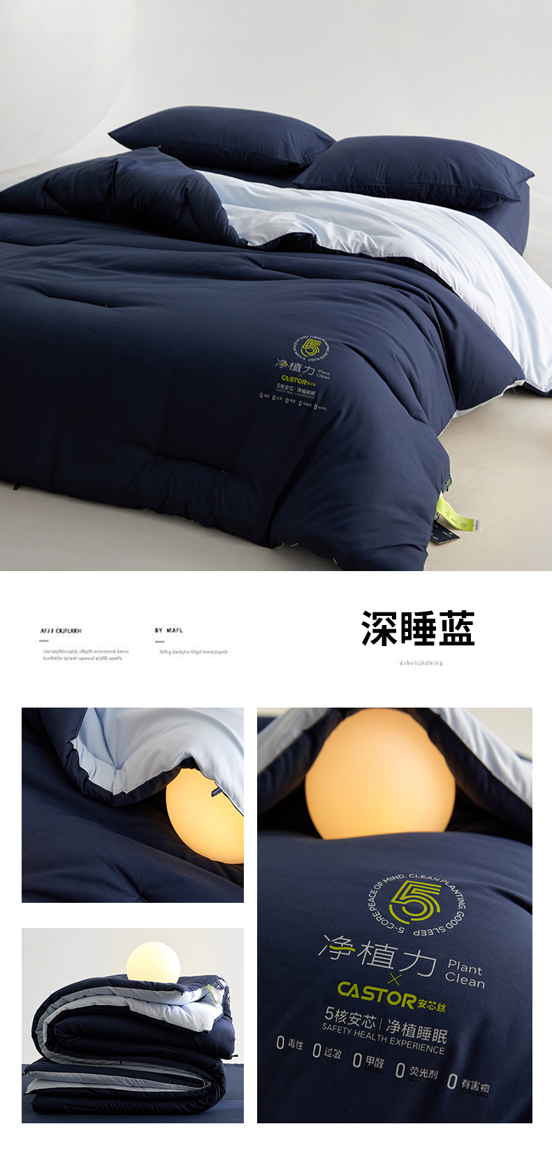 • 91家纺网 家纺一手货源 找家纺 头等舱 2025新款深睡 零压 软糯 净植力抗菌 防螨 防霉 低致敏 秋冬被(空镜图) 深睡蓝