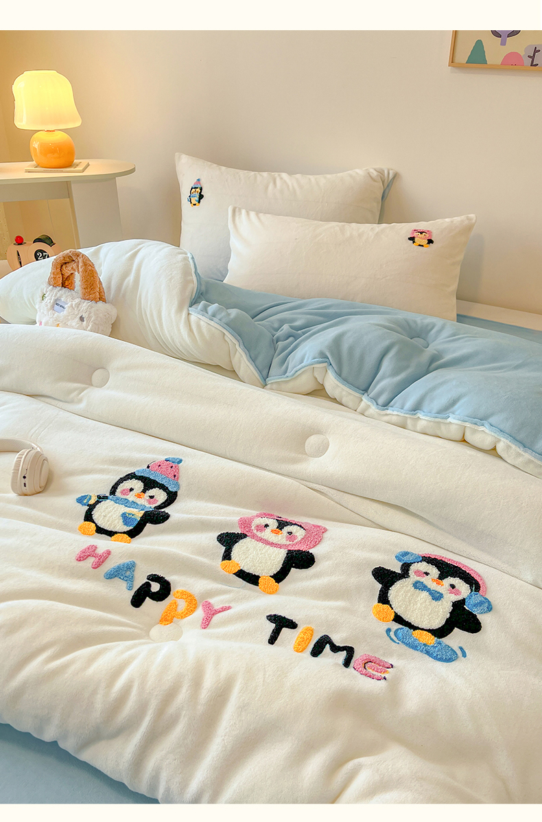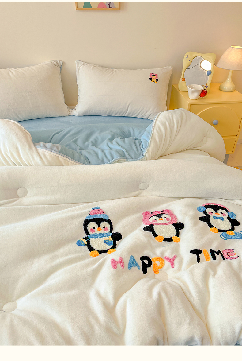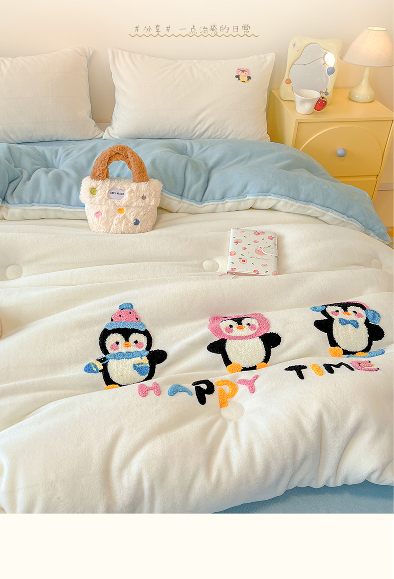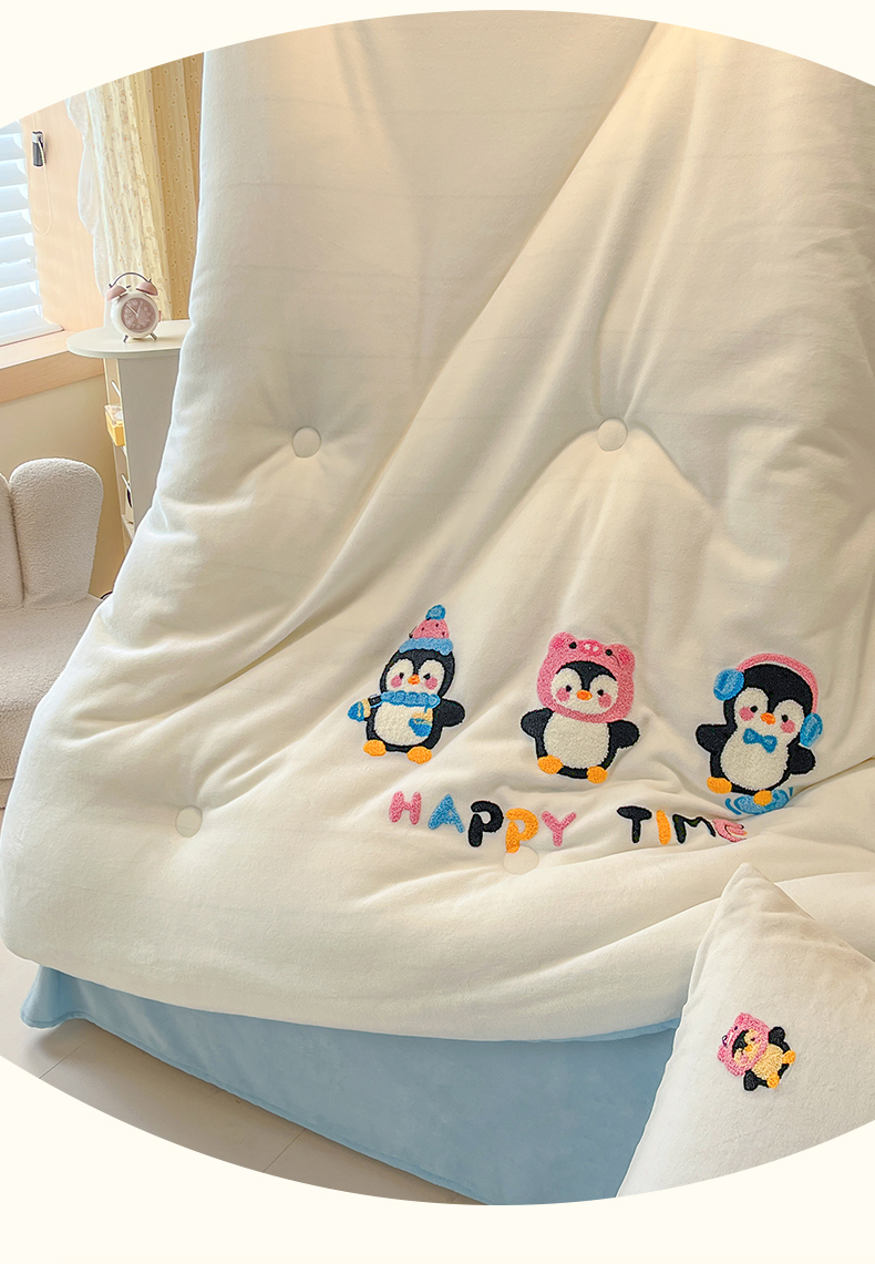 商品名称:换种生活 2025新款A类牛奶绒毛巾绣冬被被子被芯 企鹅时光