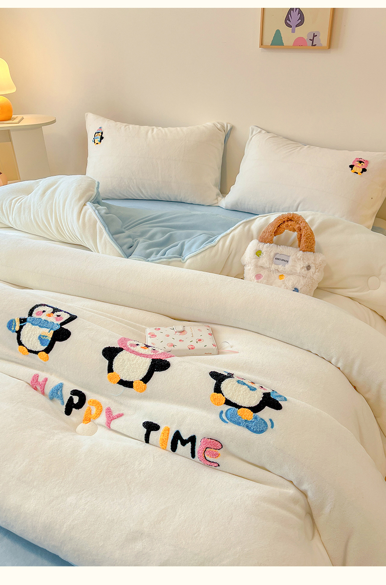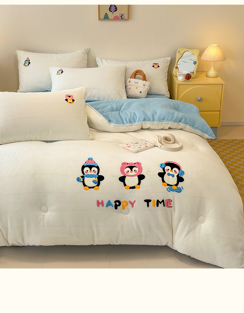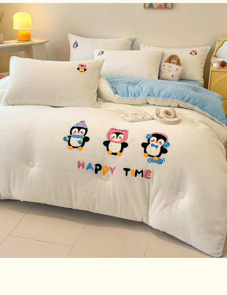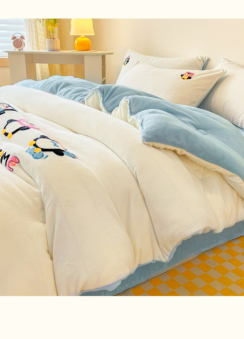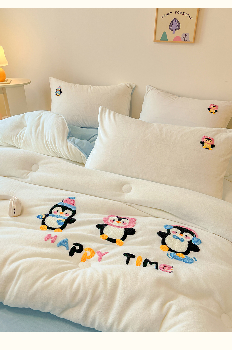 商品名称:换种生活 2025新款A类牛奶绒毛巾绣冬被被子被芯 企鹅时光
