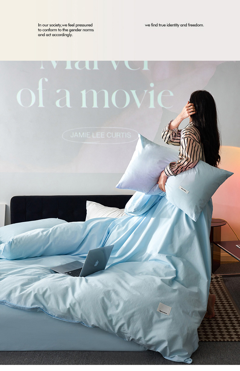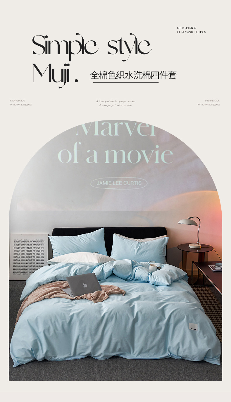当前位置: 91家纺网 > 商品网购 > 床品套件 > 四件套 > 全棉普通四件套 > 蓝邻家纺 2025新款A类全棉纯棉水洗棉纯色贴标系列四件套-风格一 粉末蓝
