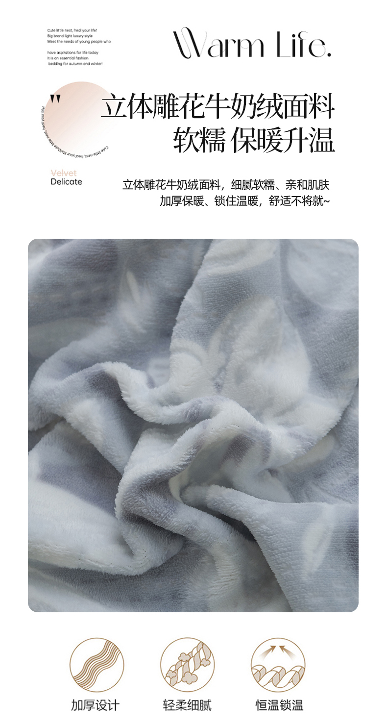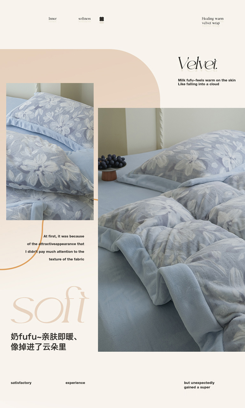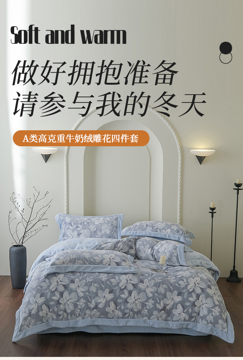 (总)米奈家居 2025新款立体雕花拼角款牛奶绒四件套,浮光-灰,浮光-咖,花间集-豆沙,花间集-蓝,花如玉-蓝,花如玉-驼,秋影-粉,秋影-灰蓝