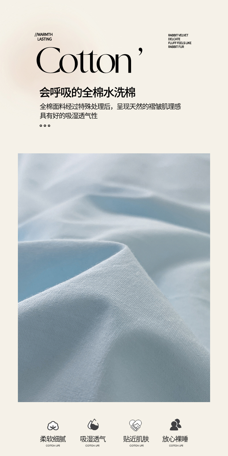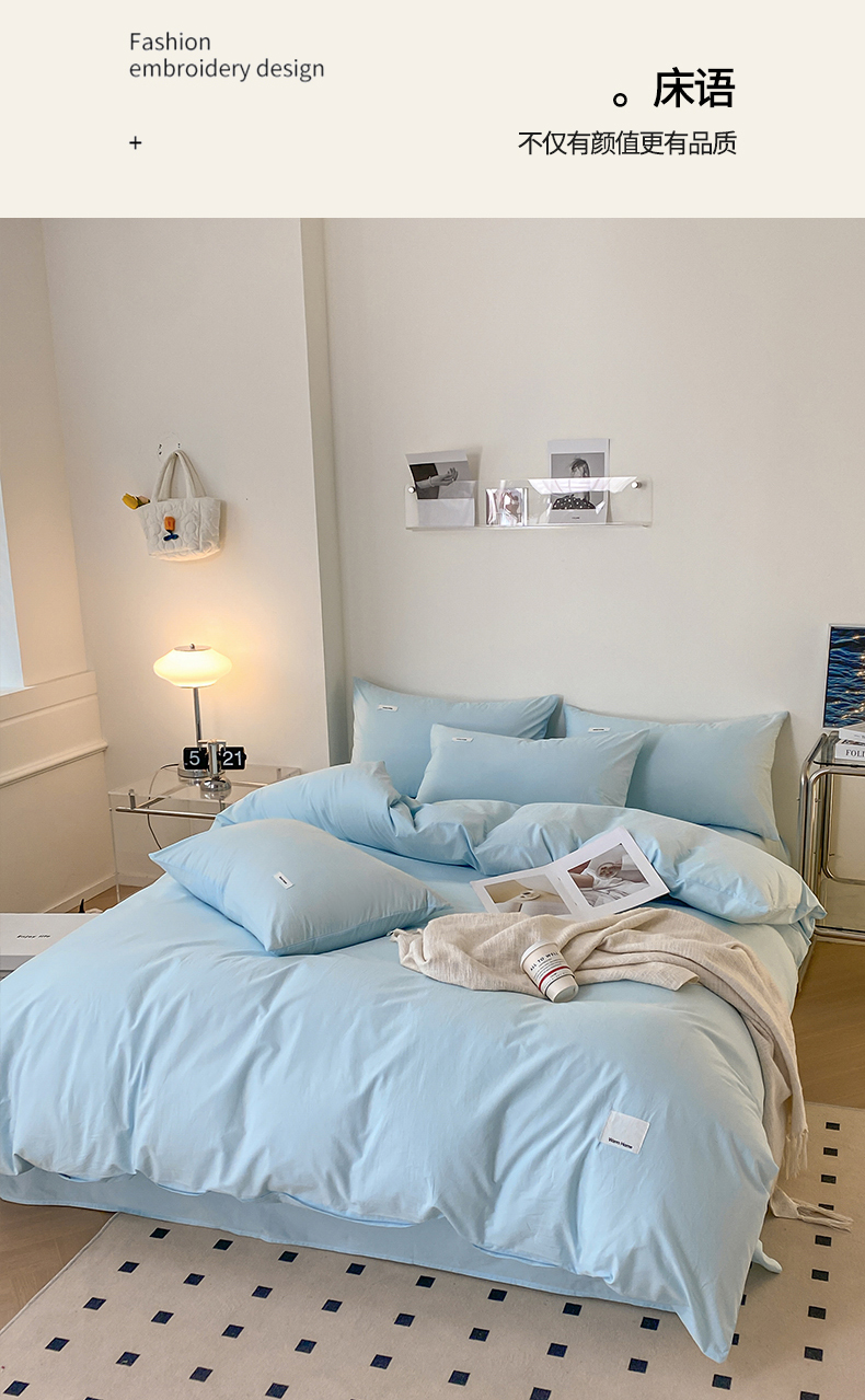 商品名称:(总)蓝邻家纺 2025新款A类全棉纯棉水洗棉纯色贴标系列四件套-风格二