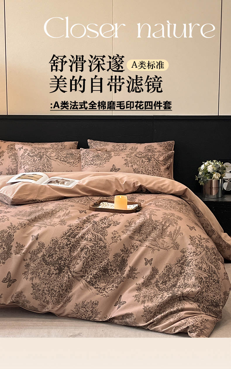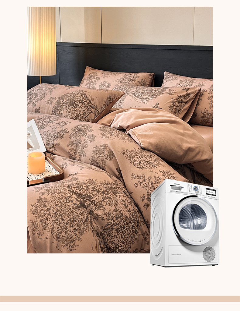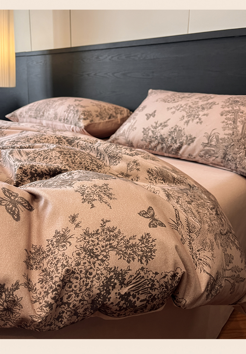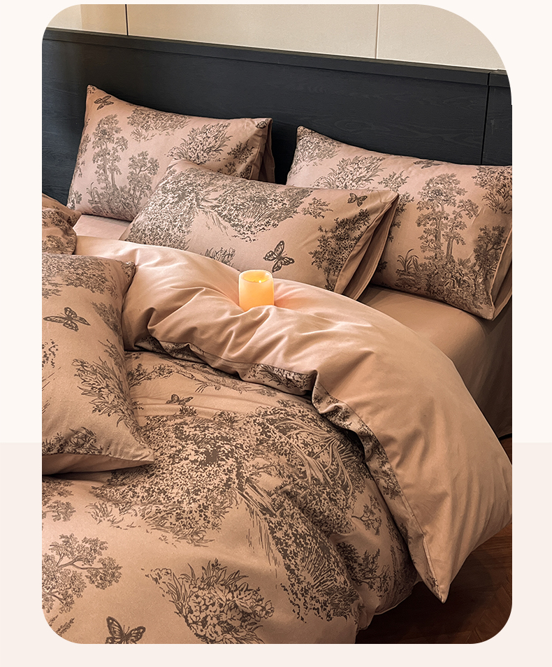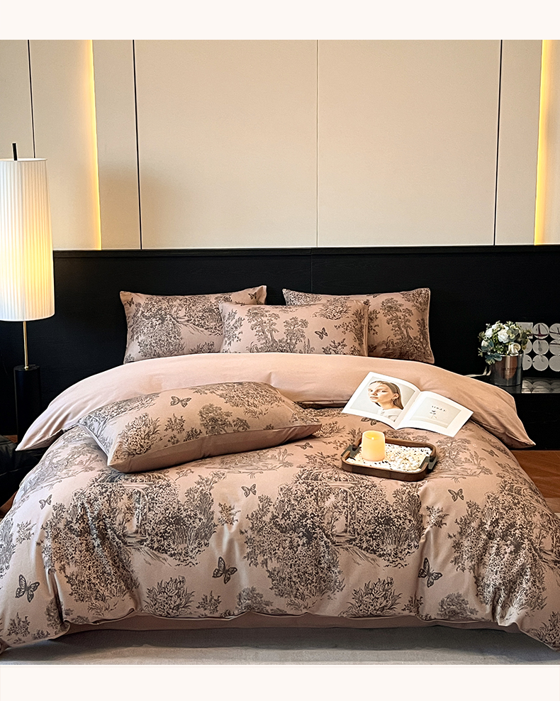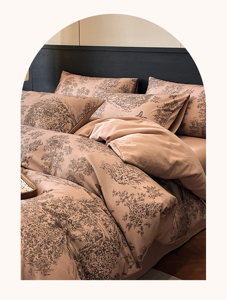 当前位置: 91家纺网 > 商品网购 > 床品套件 > 四件套 > 全棉普通四件套 > 典曼家纺 2025新品法式复古全棉A类磨毛四件套 春烟-咖