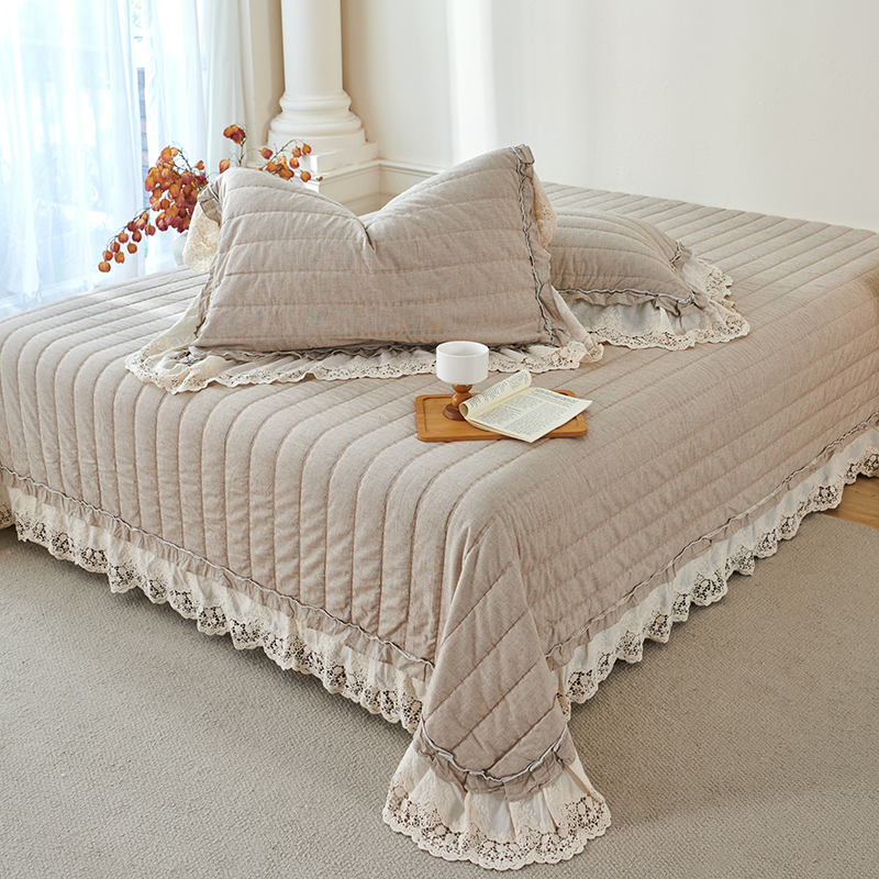 (总)桂雅居 2025新款舒适麻棉麻蕾丝花边单床盖床盖单件,海棠红,栗壳色,麻本色,烟墨灰,组合图仅供展示不可下单,手拎袋包装,清婉花语-灰,秋意-红,素锦-咖