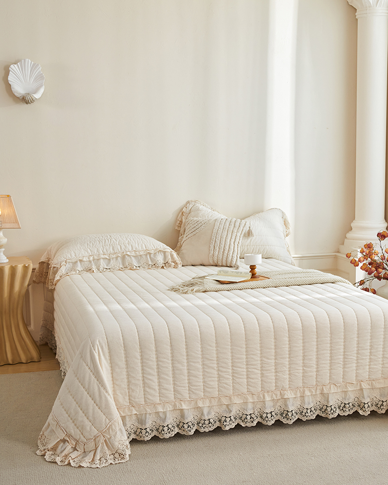 桂雅居 2025新款舒适麻棉麻蕾丝花边单床盖床盖单件 清婉花语-灰