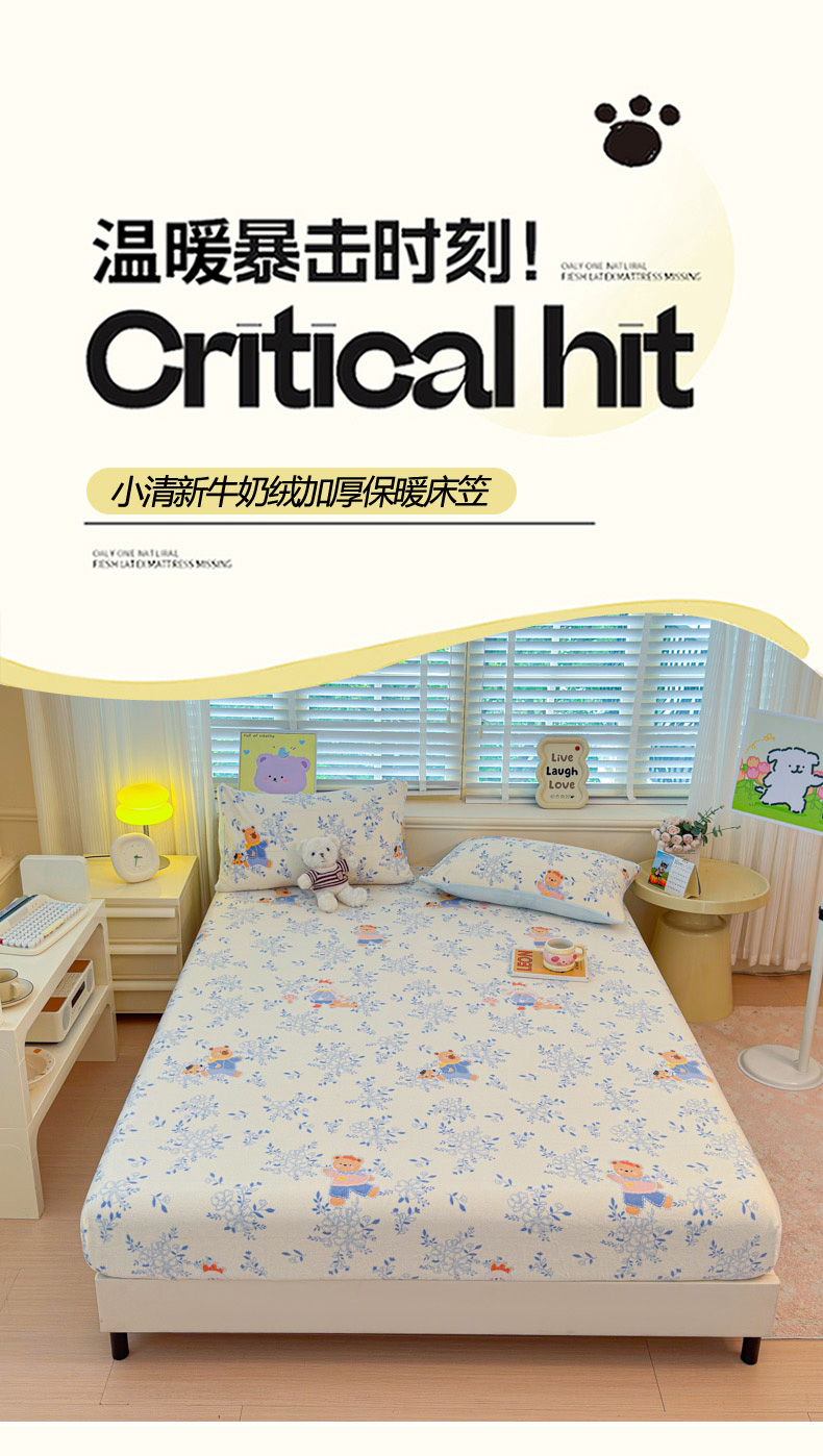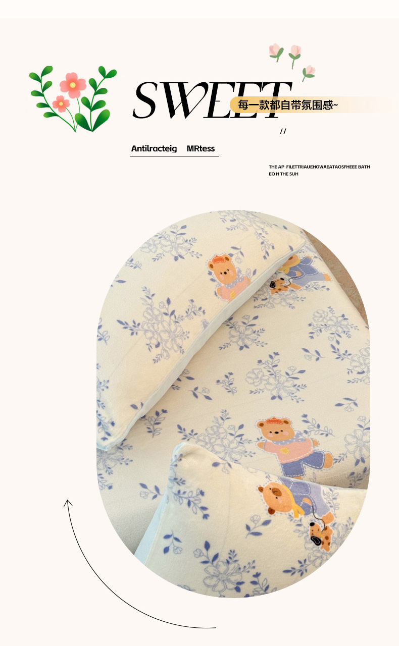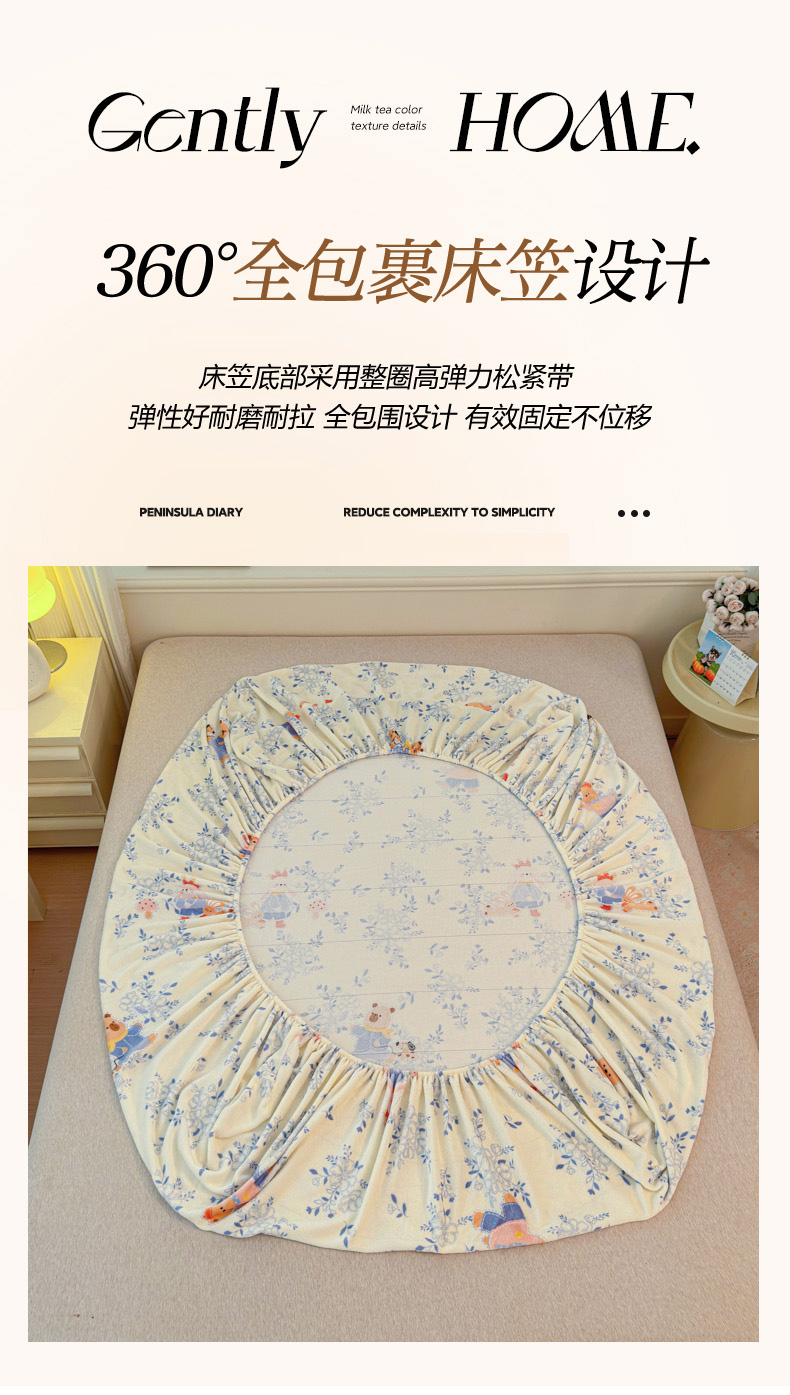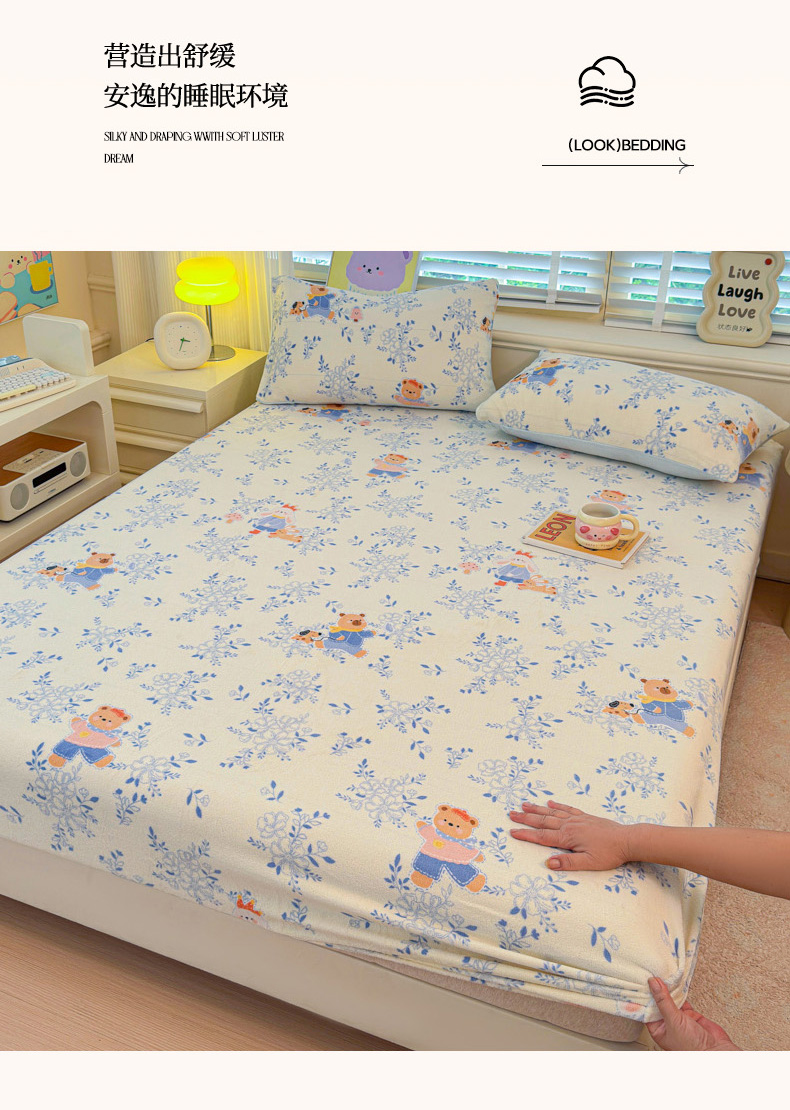 慕澄家纺 2025新款牛奶绒印花床笠床笠单品 床笠-小美好
