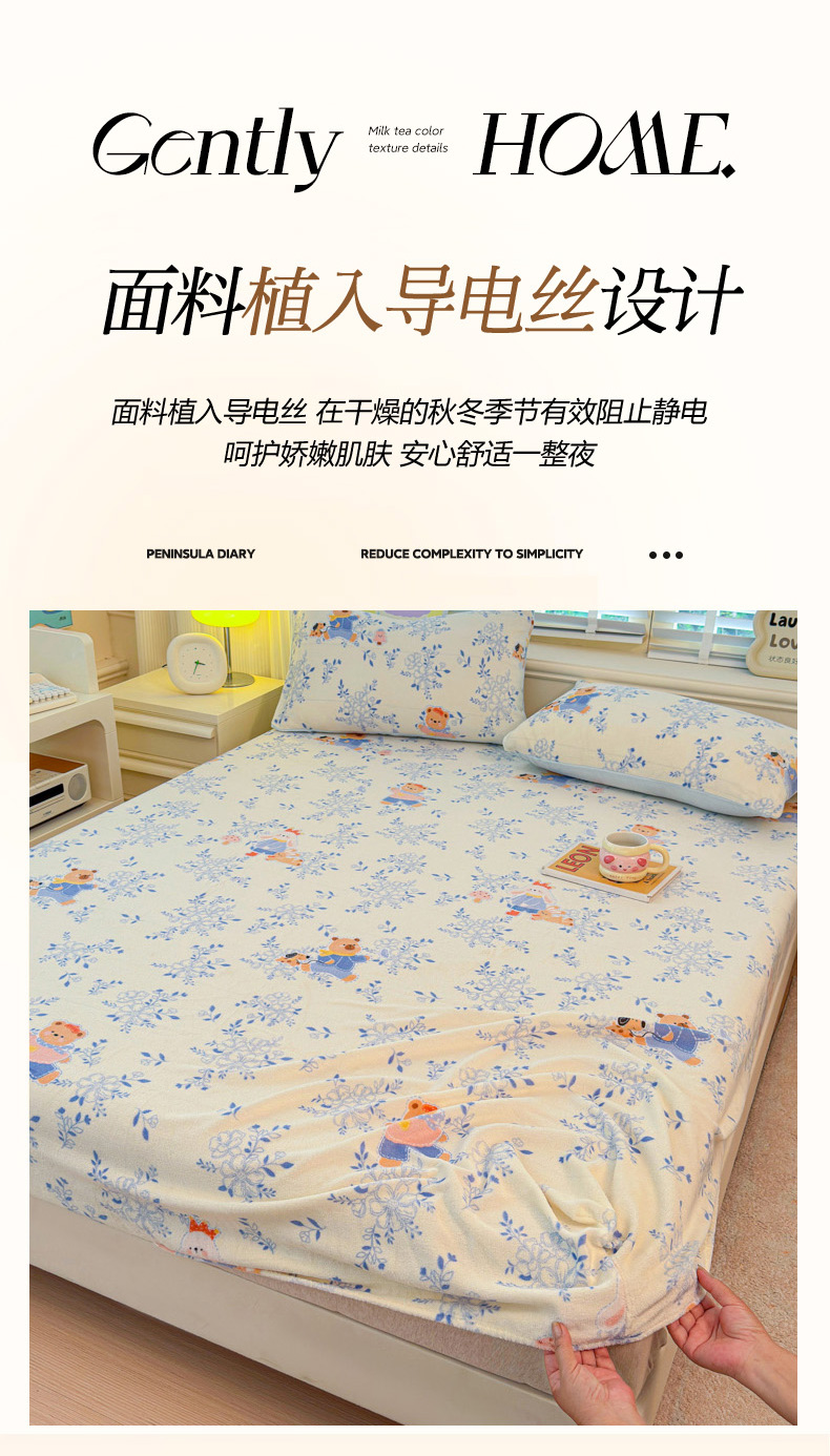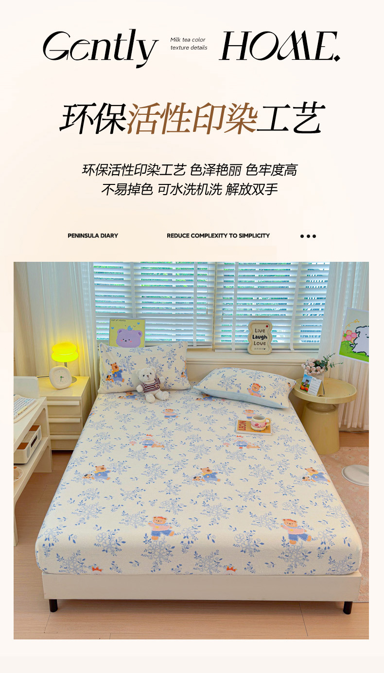• 91家纺网 家纺一手货源 找家纺 慕澄家纺 2025新款牛奶绒印花床笠床笠单品 床笠-小美好