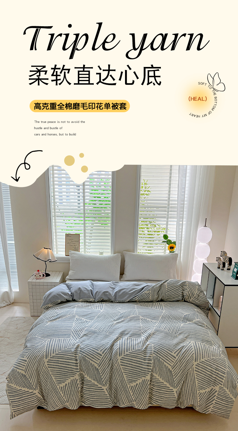 • 91家纺网 家纺一手货源 找家纺 依庭 2025新款高克重全棉纯棉磨毛印花单被套 奥维斯