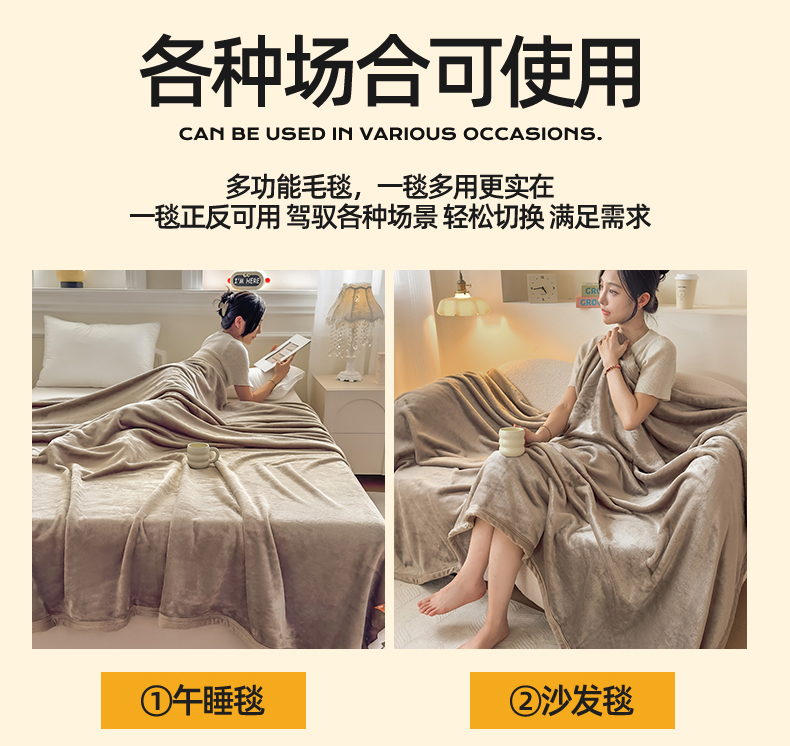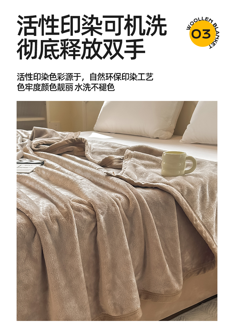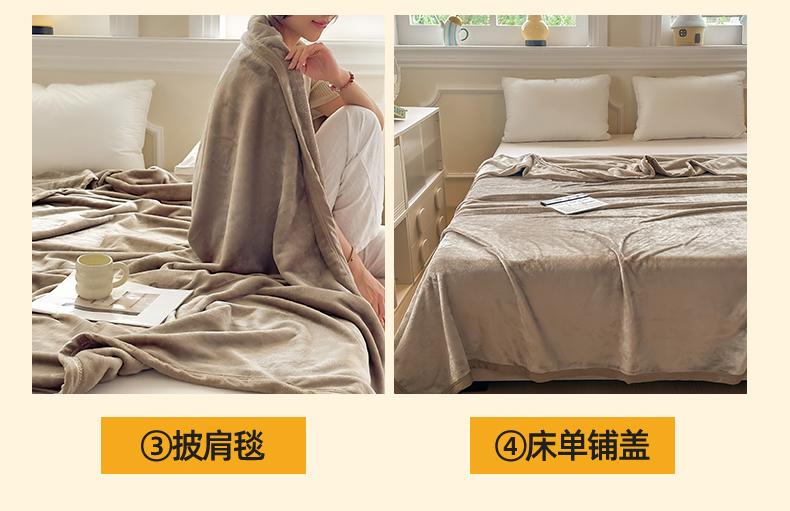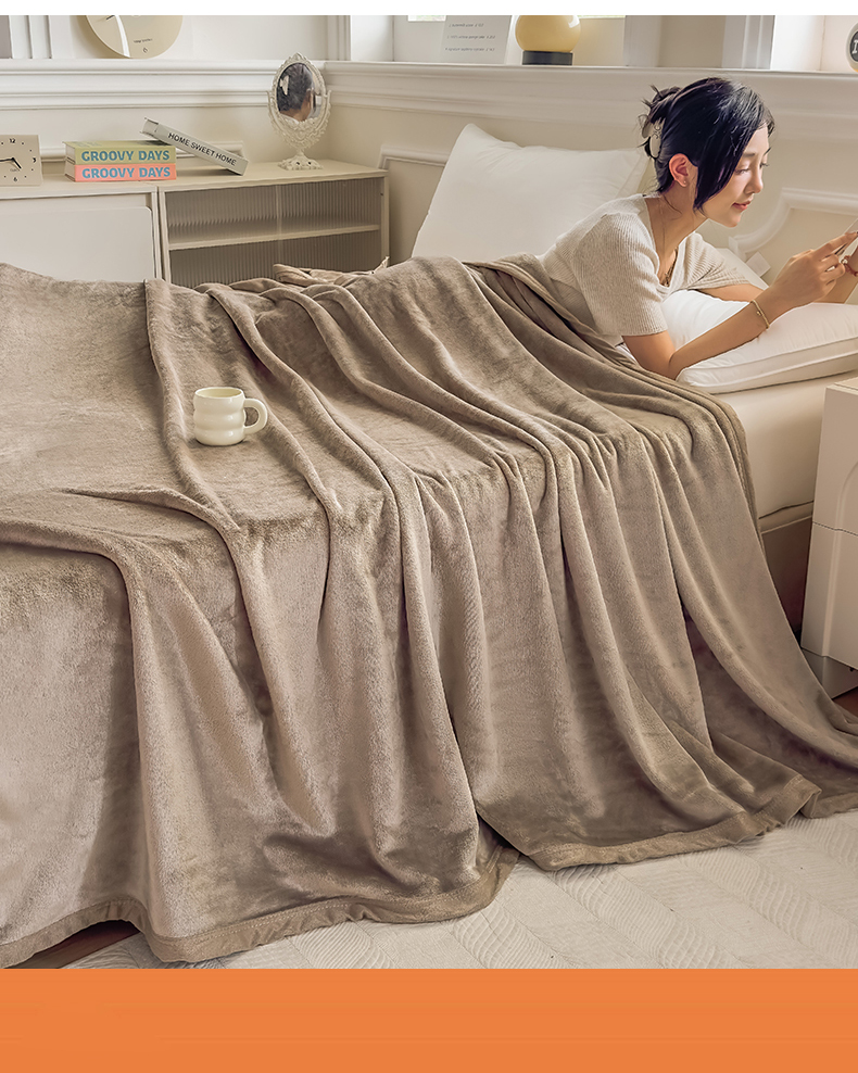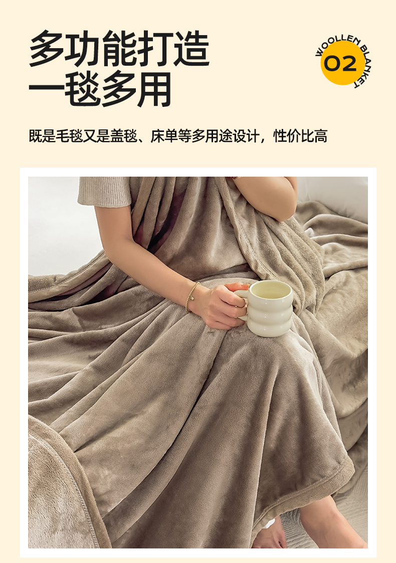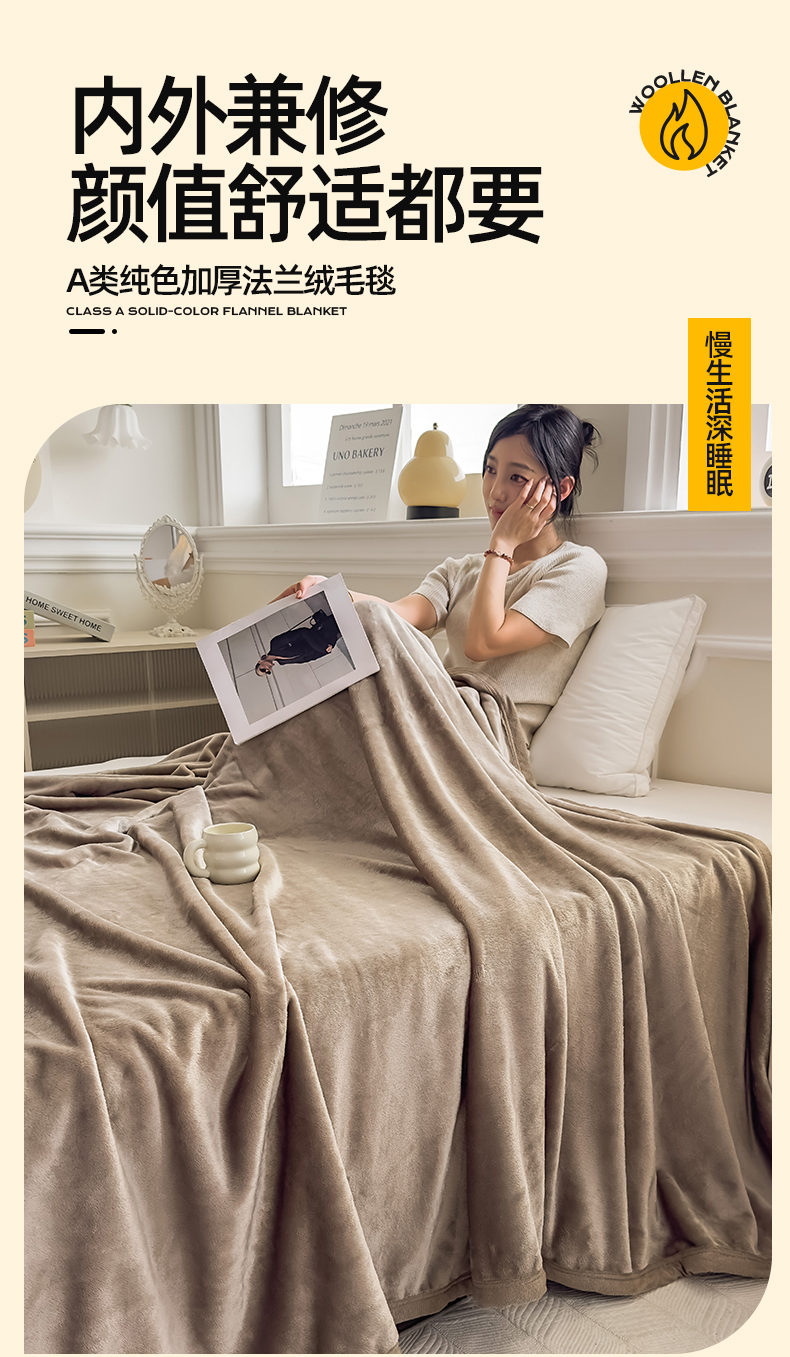 予梦家纺 2025新款320g高克重加厚法兰绒毛毯办公室午休毯 卡布奇诺