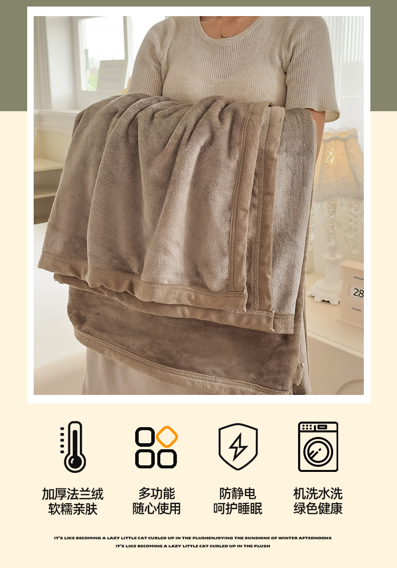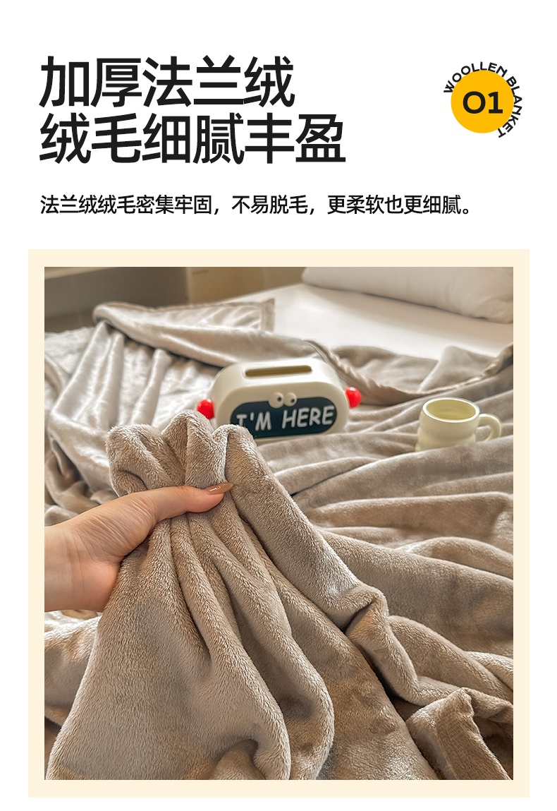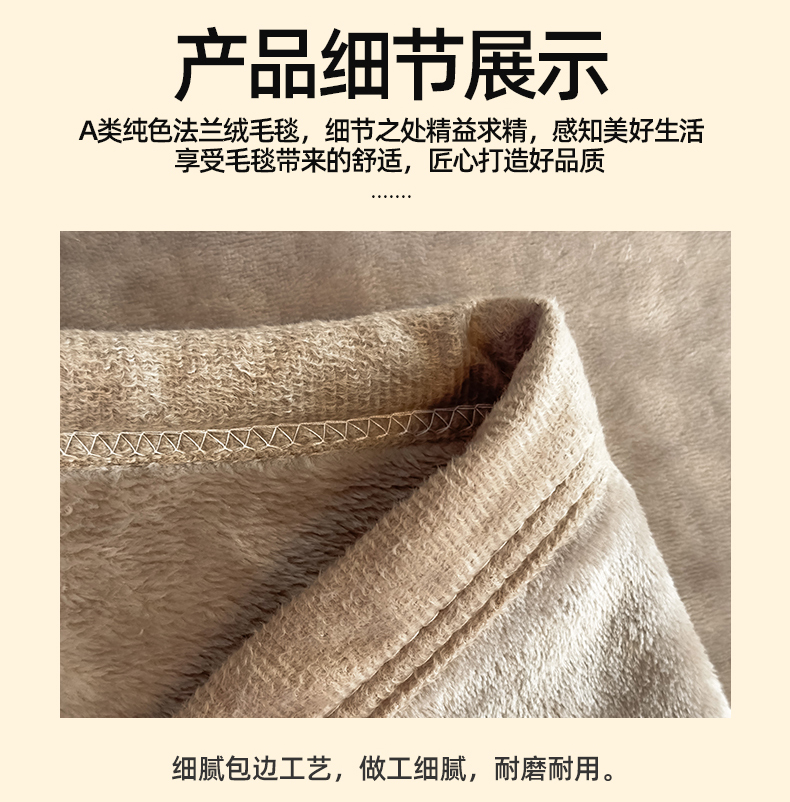 商品名称:予梦家纺 2025新款320g高克重加厚法兰绒毛毯办公室午休毯 卡布奇诺