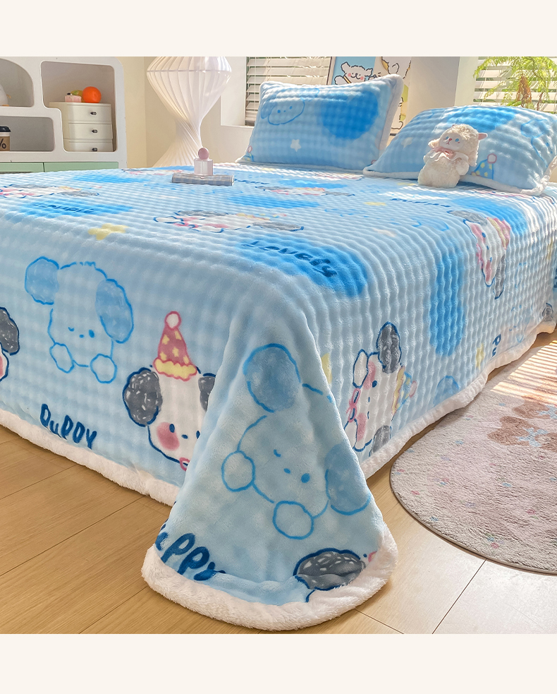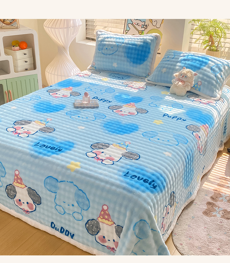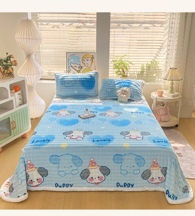 • 91家纺网 家纺一手货源 找家纺 眠势力 2025新款暖绒泡泡床单冬季保暖被单牛奶绒床单罩 趴趴狗【暖绒泡泡床单】
