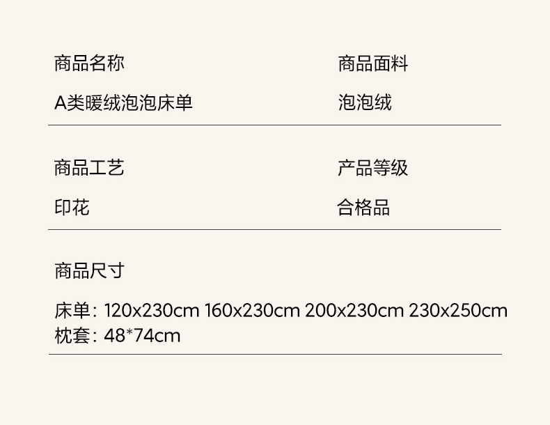 [{"sp_id":11,"sp_name":"\u989c\u8272","sp_format":2,"sp_list":[{"sp_value_id":653,"sp_value_name":"\u8db4\u8db4\u72d7\u3010\u6696\u7ed2\u6ce1\u6ce1\u5e8a\u5355\u3011","sp_value_image":{"id":999,"path":"https:\/\/img3.91jf.com\/ghelp\/2025\/20251018\/20251018124101_404218.jpg"},"sp_value_video":{"id":0,"img":"","path":"","time":0,"download_num":0,"play_num":0},"price":"22.00","storage":5000,"weight":"0.800","is_check_weight":0,"plus_price":"","sp_sort":6}]},{"sp_id":24,"sp_name":"\u5c3a\u5bf8","sp_format":1,"sp_list":[{"sp_value_id":1674,"sp_value_name":"\u3010\u5355\u4ef6\u5e8a\u5355\u3011120*230cm","sp_value_image":{"id":0,"path":""},"sp_value_video":{"id":0,"img":"","path":"","time":0,"download_num":0,"play_num":0},"price":"22.00","storage":500,"weight":"0.800","is_check_weight":0,"plus_price":"","sp_sort":0},{"sp_value_id":1675,"sp_value_name":"\u3010\u5355\u4ef6\u5e8a\u5355\u3011160*230cm","sp_value_image":{"id":0,"path":""},"sp_value_video":{"id":0,"img":"","path":"","time":0,"download_num":0,"play_num":0},"price":"27.00","storage":500,"weight":"0.900","is_check_weight":0,"plus_price":"","sp_sort":0},{"sp_value_id":1676,"sp_value_name":"\u3010\u5355\u4ef6\u5e8a\u5355\u3011200*230cm","sp_value_image":{"id":0,"path":""},"sp_value_video":{"id":0,"img":"","path":"","time":0,"download_num":0,"play_num":0},"price":"32.00","storage":500,"weight":"1.200","is_check_weight":0,"plus_price":"","sp_sort":0},{"sp_value_id":1677,"sp_value_name":"\u3010\u5355\u4ef6\u5e8a\u5355\u3011250*230cm","sp_value_image":{"id":0,"path":""},"sp_value_video":{"id":0,"img":"","path":"","time":0,"download_num":0,"play_num":0},"price":"38.00","storage":500,"weight":"1.400","is_check_weight":0,"plus_price":"","sp_sort":0},{"sp_value_id":1678,"sp_value_name":"\u3010\u5e8a\u5355+\u6795\u59571\u53ea\u3011120*230cm","sp_value_image":{"id":0,"path":""},"sp_value_video":{"id":0,"img":"","path":"","time":0,"download_num":0,"play_num":0},"price":"29.00","storage":500,"weight":"0.950","is_check_weight":0,"plus_price":"","sp_sort":0},{"sp_value_id":1679,"sp_value_name":"\u3010\u5e8a\u5355+\u6795\u59571\u53ea\u3011160*230cm","sp_value_image":{"id":0,"path":""},"sp_value_video":{"id":0,"img":"","path":"","time":0,"download_num":0,"play_num":0},"price":"34.00","storage":500,"weight":"1.050","is_check_weight":0,"plus_price":"","sp_sort":0},{"sp_value_id":1680,"sp_value_name":"\u3010\u5e8a\u5355+\u6795\u59572\u53ea\u3011200*230cm","sp_value_image":{"id":0,"path":""},"sp_value_video":{"id":0,"img":"","path":"","time":0,"download_num":0,"play_num":0},"price":"46.00","storage":500,"weight":"1.500","is_check_weight":0,"plus_price":"","sp_sort":0},{"sp_value_id":1681,"sp_value_name":"\u3010\u5e8a\u5355+\u6795\u59572\u53ea\u3011250*230cm","sp_value_image":{"id":0,"path":""},"sp_value_video":{"id":0,"img":"","path":"","time":0,"download_num":0,"play_num":0},"price":"52.00","storage":500,"weight":"1.700","is_check_weight":0,"plus_price":"","sp_sort":0},{"sp_value_id":1682,"sp_value_name":"\u6795\u59571\u53ea","sp_value_image":{"id":0,"path":""},"sp_value_video":{"id":0,"img":"","path":"","time":0,"download_num":0,"play_num":0},"price":"7.00","storage":500,"weight":"0.150","is_check_weight":0,"plus_price":"","sp_sort":0},{"sp_value_id":1683,"sp_value_name":"\u6795\u59572\u53ea","sp_value_image":{"id":0,"path":""},"sp_value_video":{"id":0,"img":"","path":"","time":0,"download_num":0,"play_num":0},"price":"14.00","storage":500,"weight":"0.300","is_check_weight":0,"plus_price":"","sp_sort":0}]}]