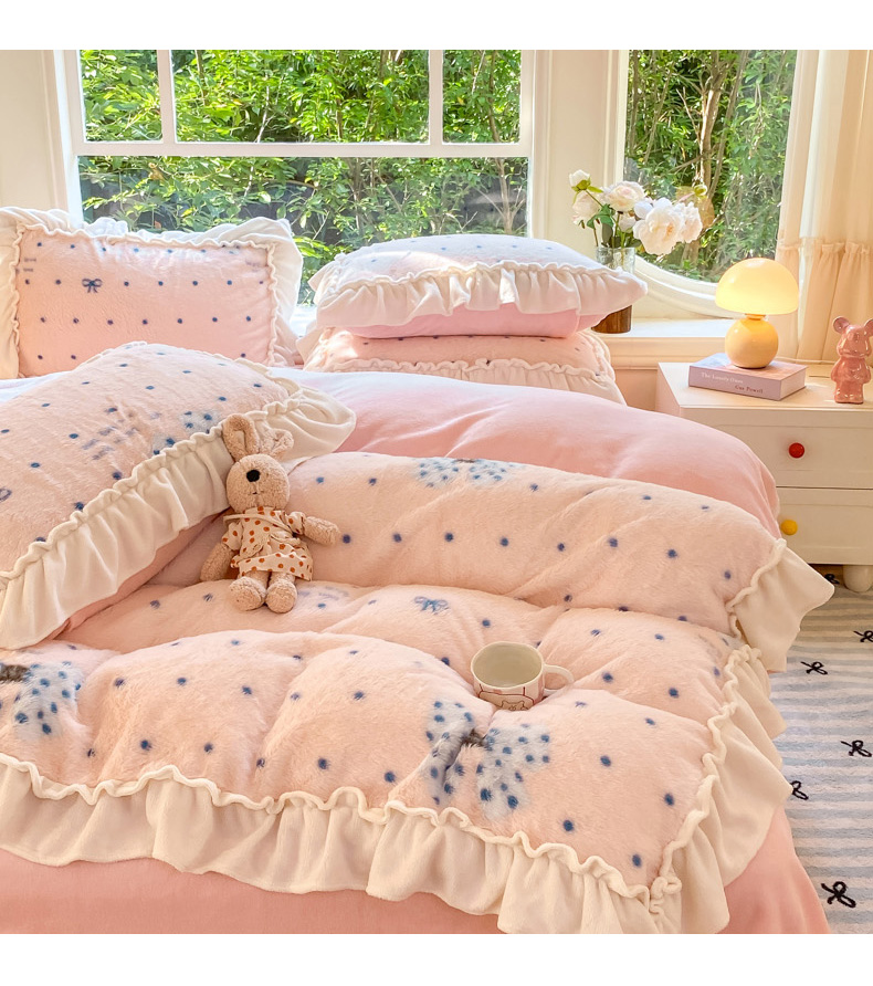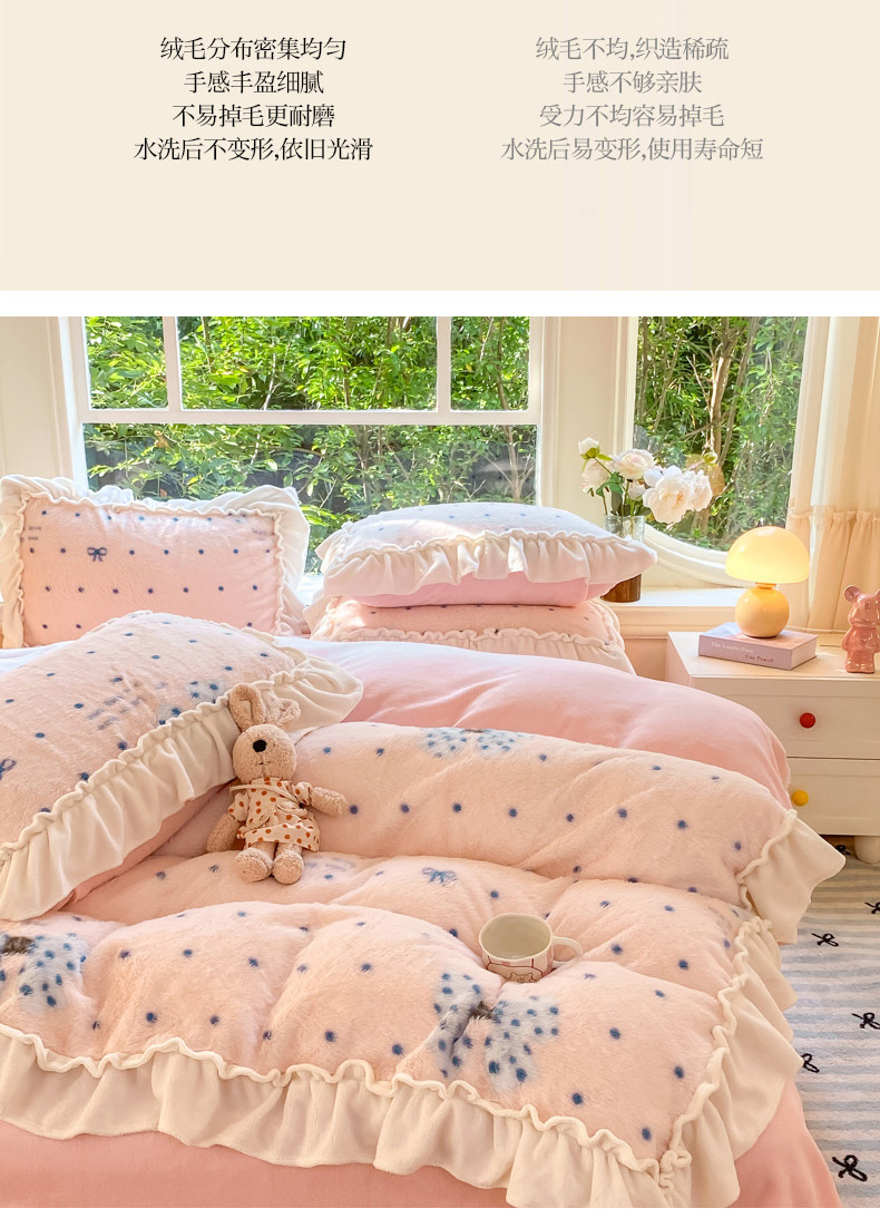 (总)米可 2025新款兔毛绒花边牛奶绒四件套,可爱蝴蝶结-粉,彩色波点,可爱蝴蝶结-咖,玫瑰庄园,梦幻女孩,柔韵-粉,柔韵-蓝,紫色花语
