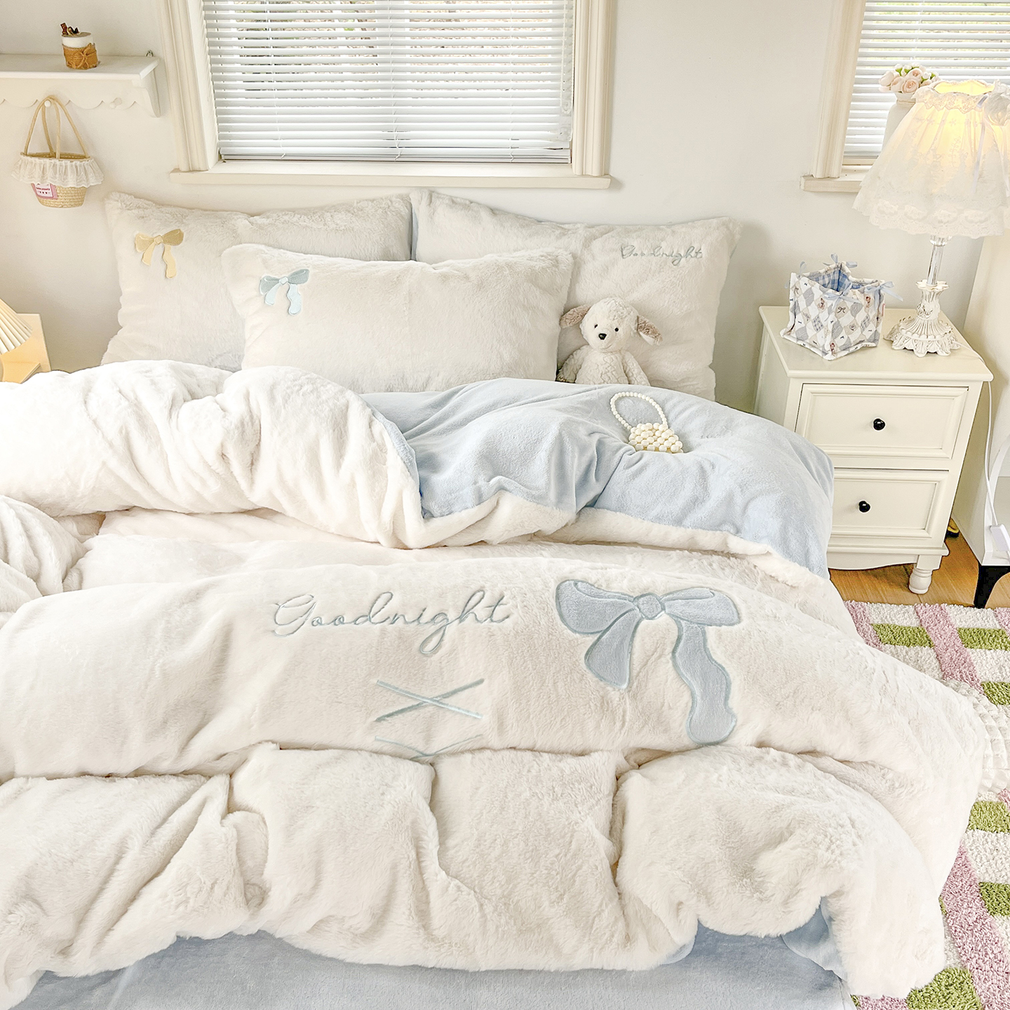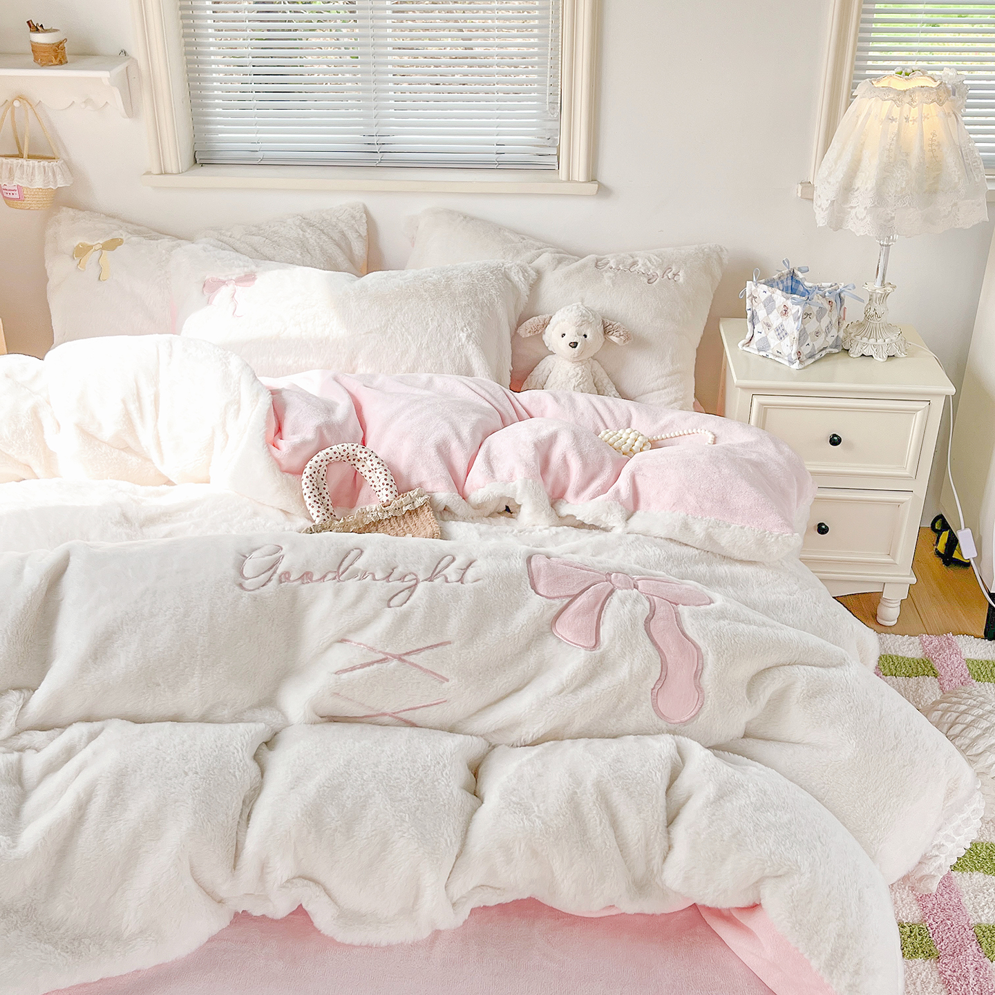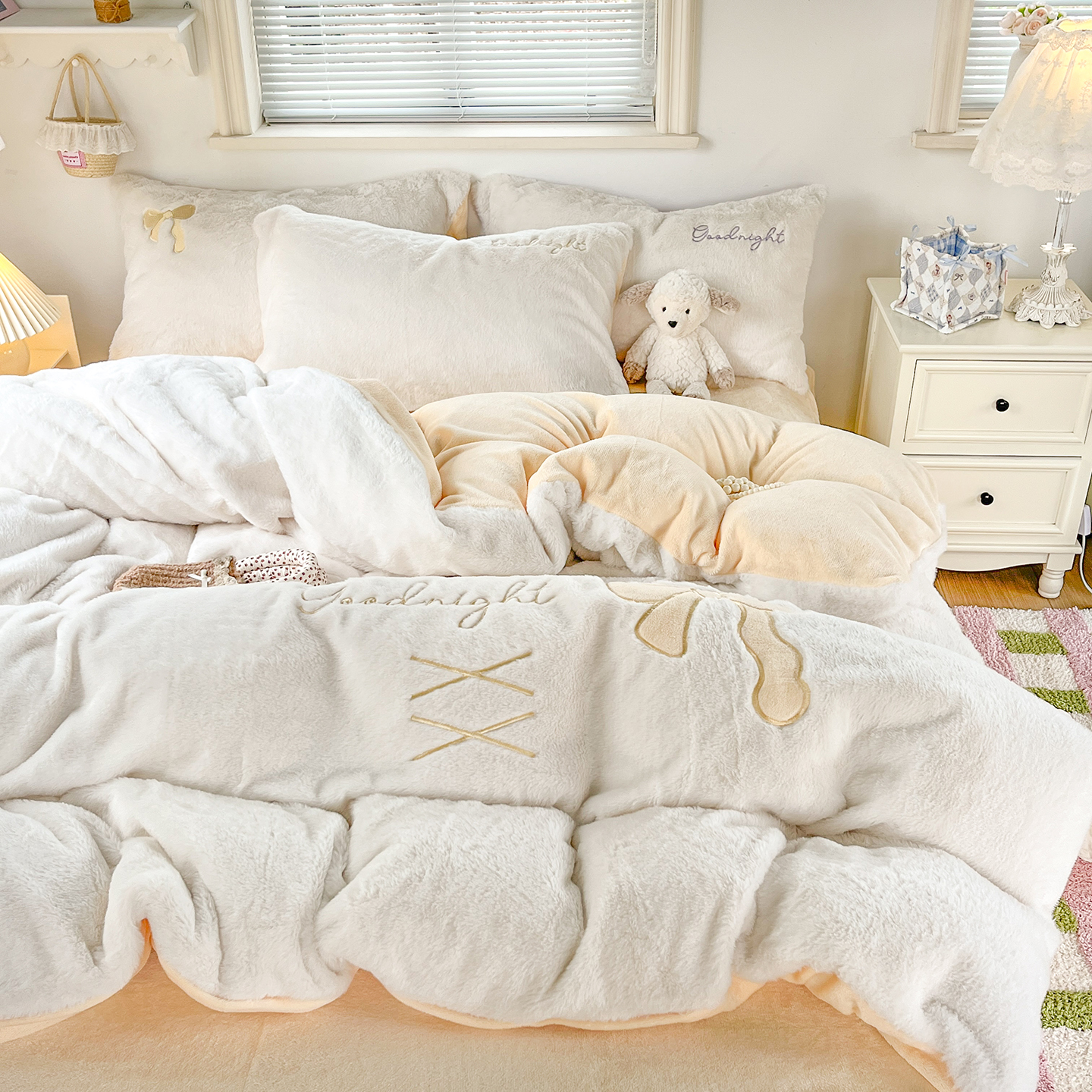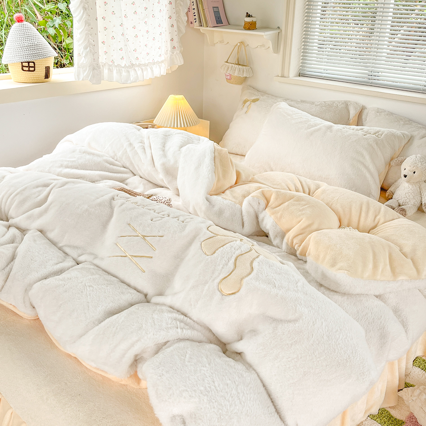 当前位置: 91家纺网 > 商品网购 > 床品套件 > 四件套 > 牛奶绒四件套 > (总)麦朵家居 2025新款高克重兔毛贴布绣牛奶绒四件套雕花绒法莱绒四件套兔兔绒四件套床笠三件套