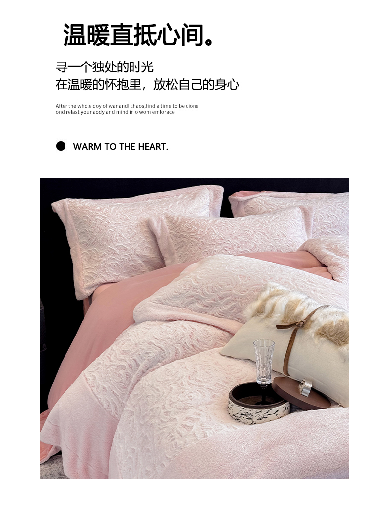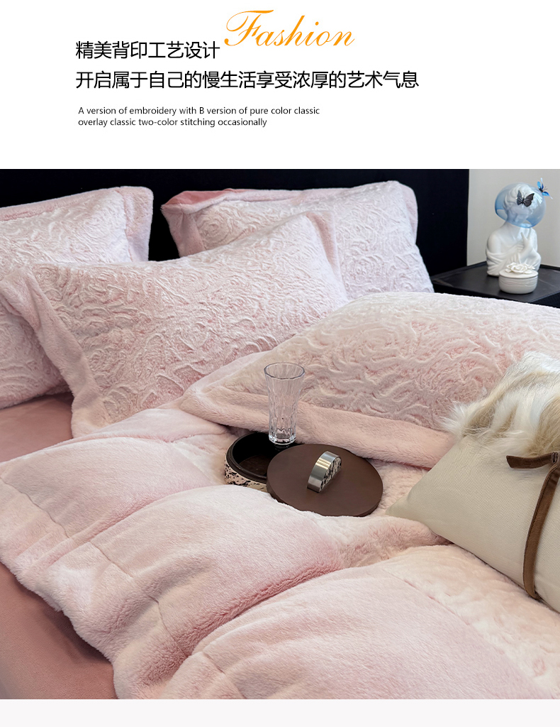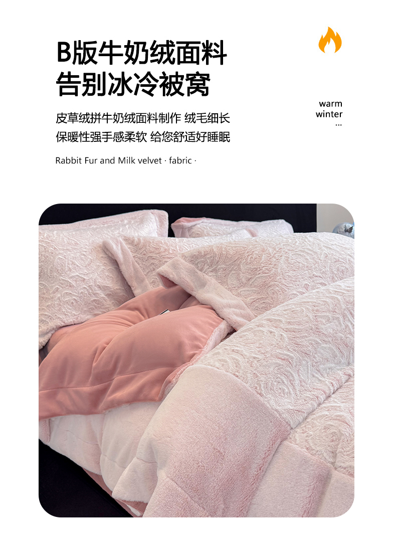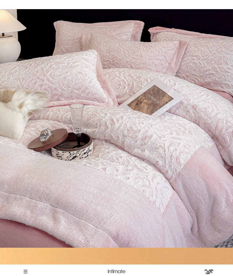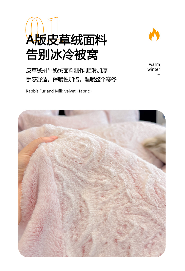 丞音家纺 11斤新款秋冬A类轻奢皮草绒加厚保暖水貂绒牛奶绒床上用品珊瑚绒四件套床单被套 伯恩-温柔粉