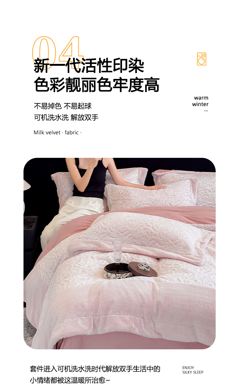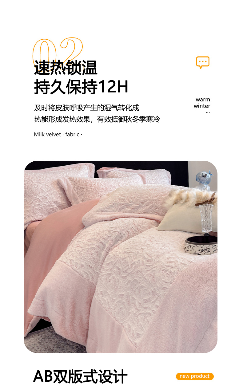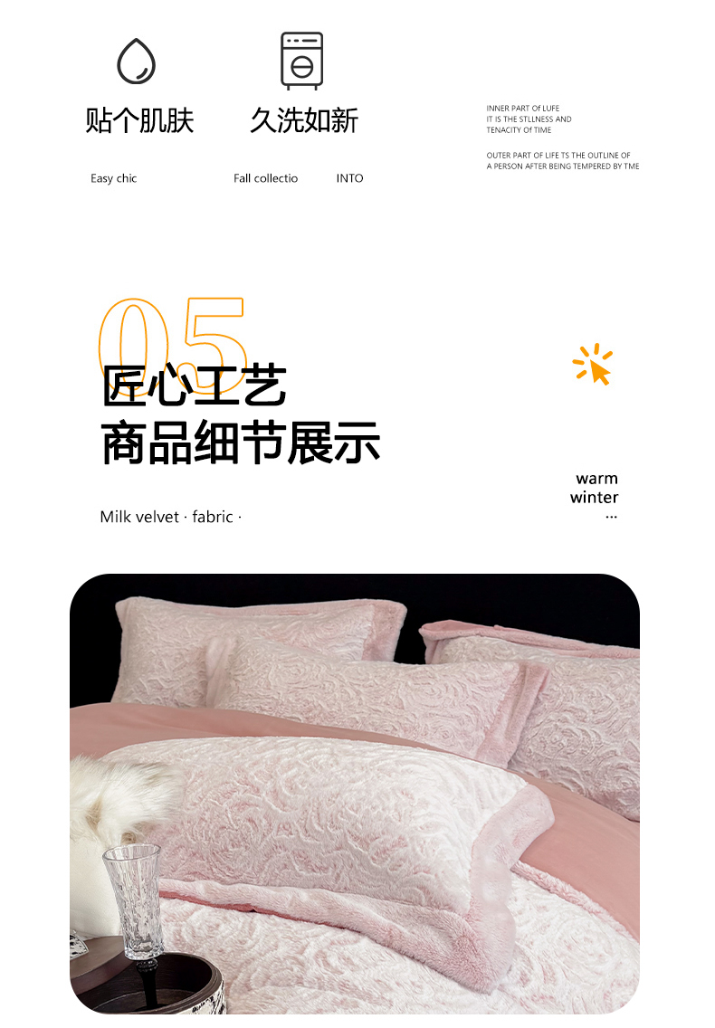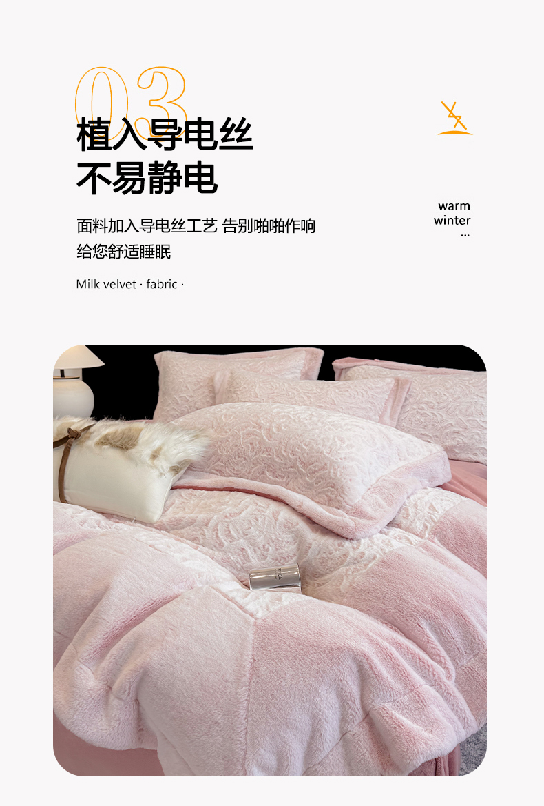 丞音家纺 11斤新款秋冬A类轻奢皮草绒加厚保暖水貂绒牛奶绒床上用品珊瑚绒四件套床单被套 伯恩-温柔粉
