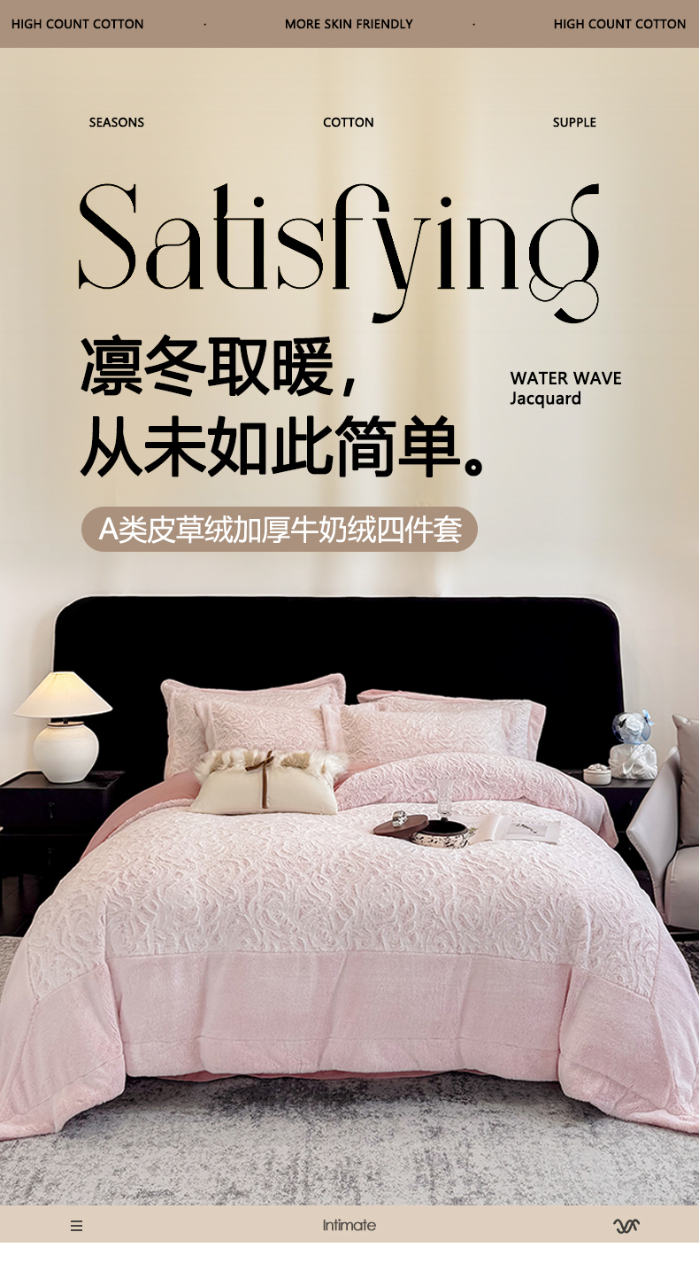 (总)丞音家纺 2025秋冬新款A类轻奢皮草绒加厚水貂绒保暖牛奶绒床上用品珊瑚绒四件套床单被套,路易斯-豆沙粉,路易斯-深咖色,路易斯-高级灰