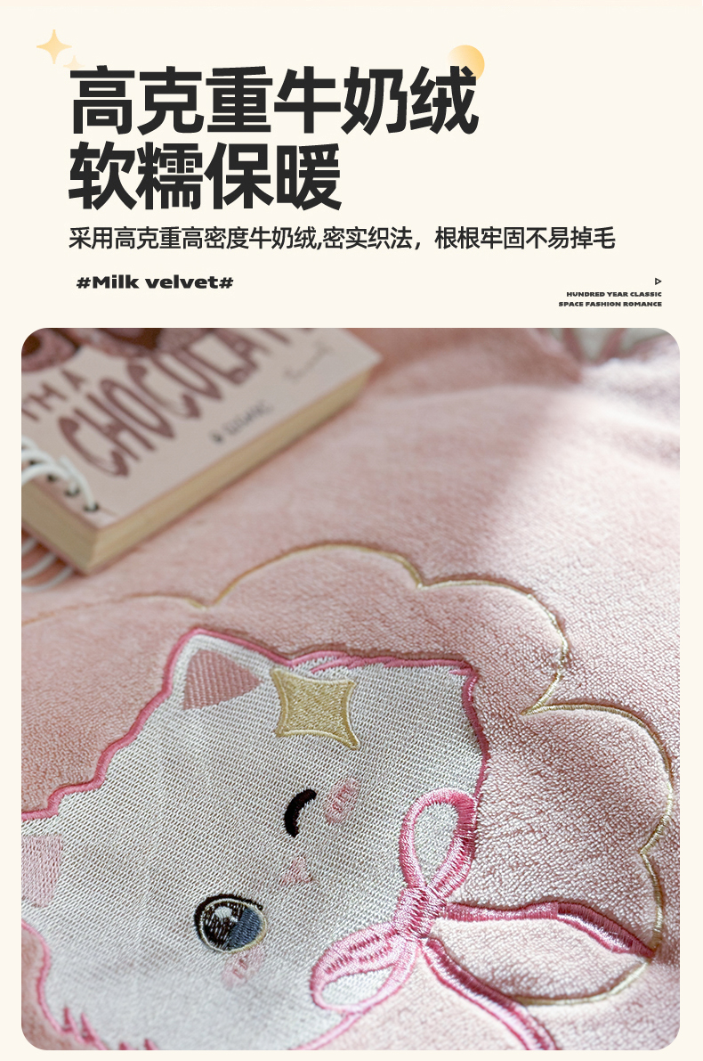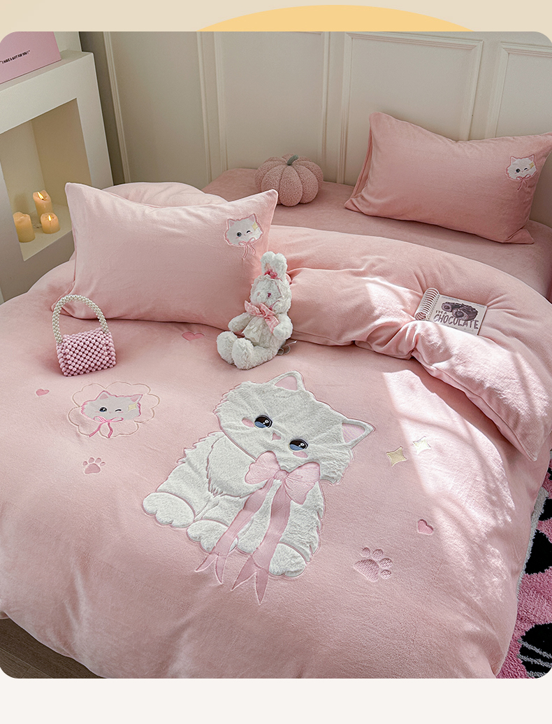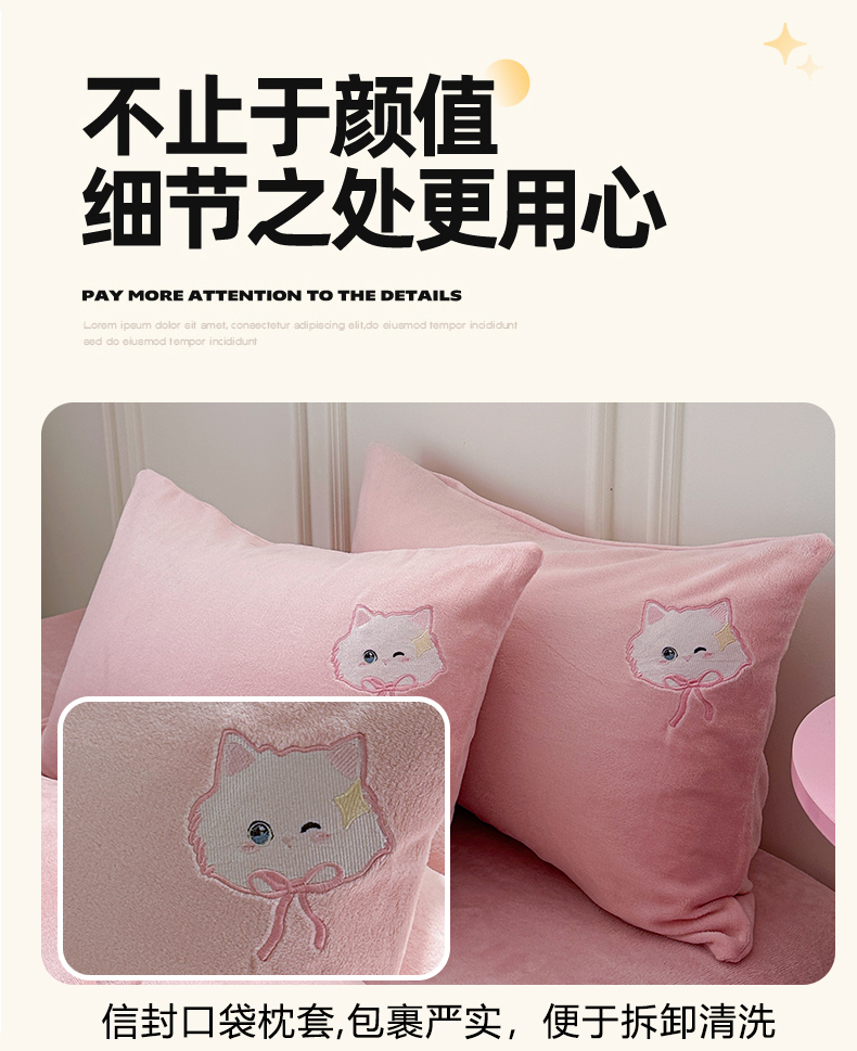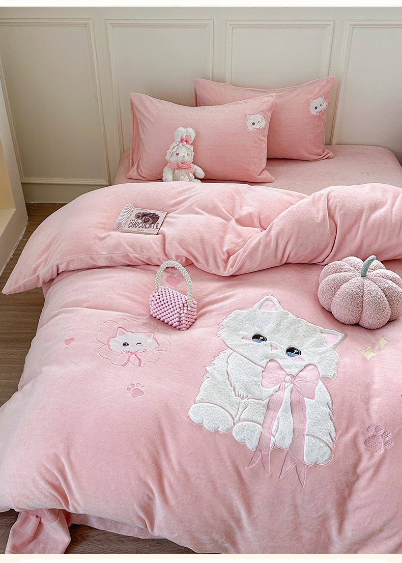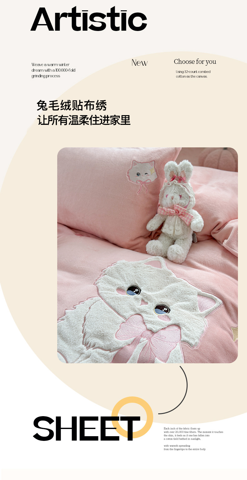 商品名称:TT.one 塔塔家居 2025新款牛奶绒立体贴布绣四件套 奶糖猫-粉