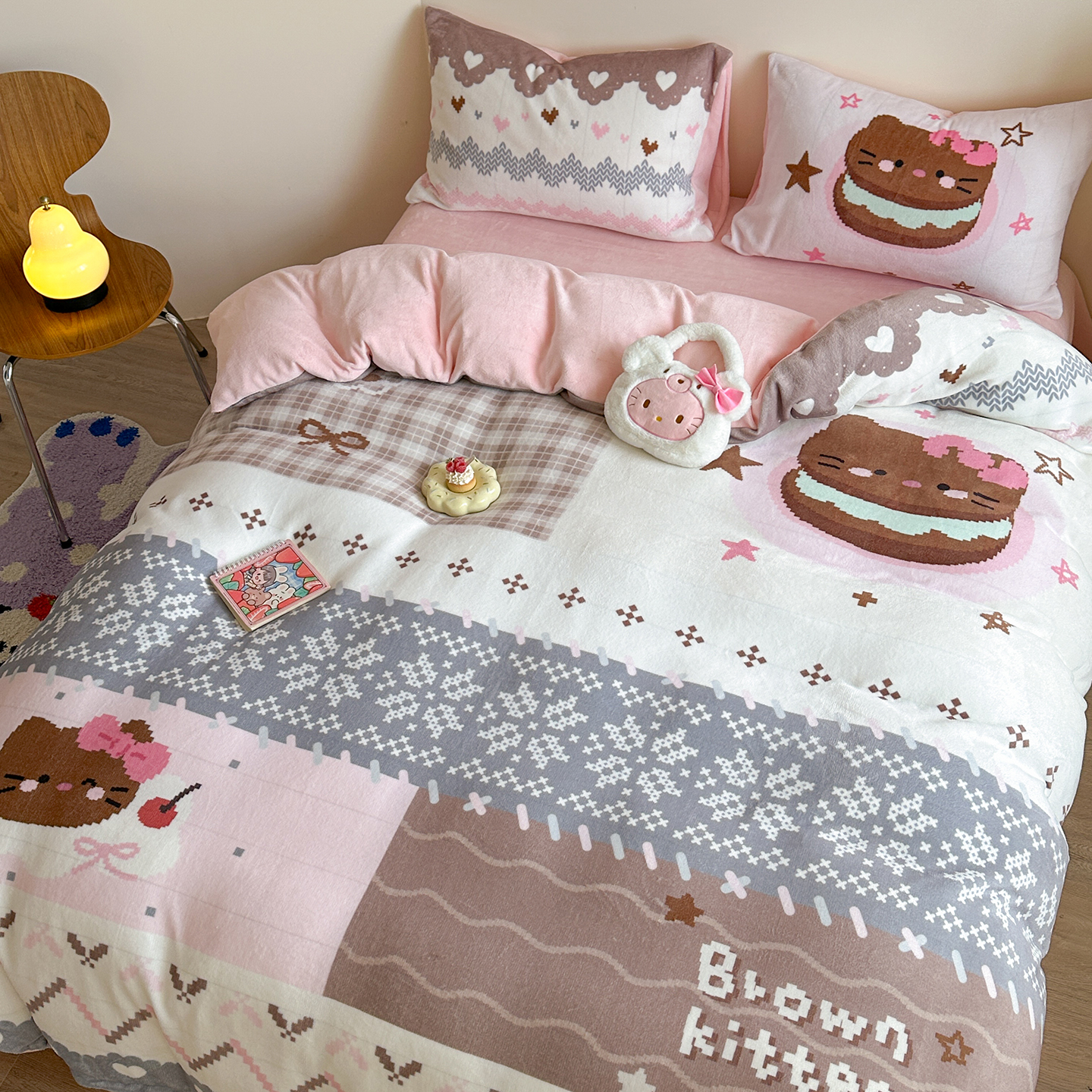 美乐迪家纺 2025新款高品质大版牛奶绒四件套 大脸猫