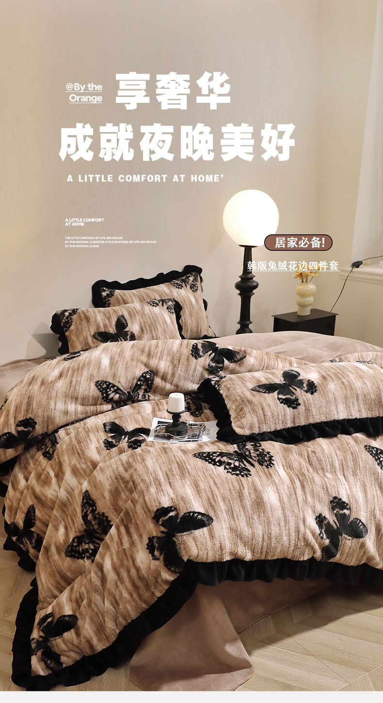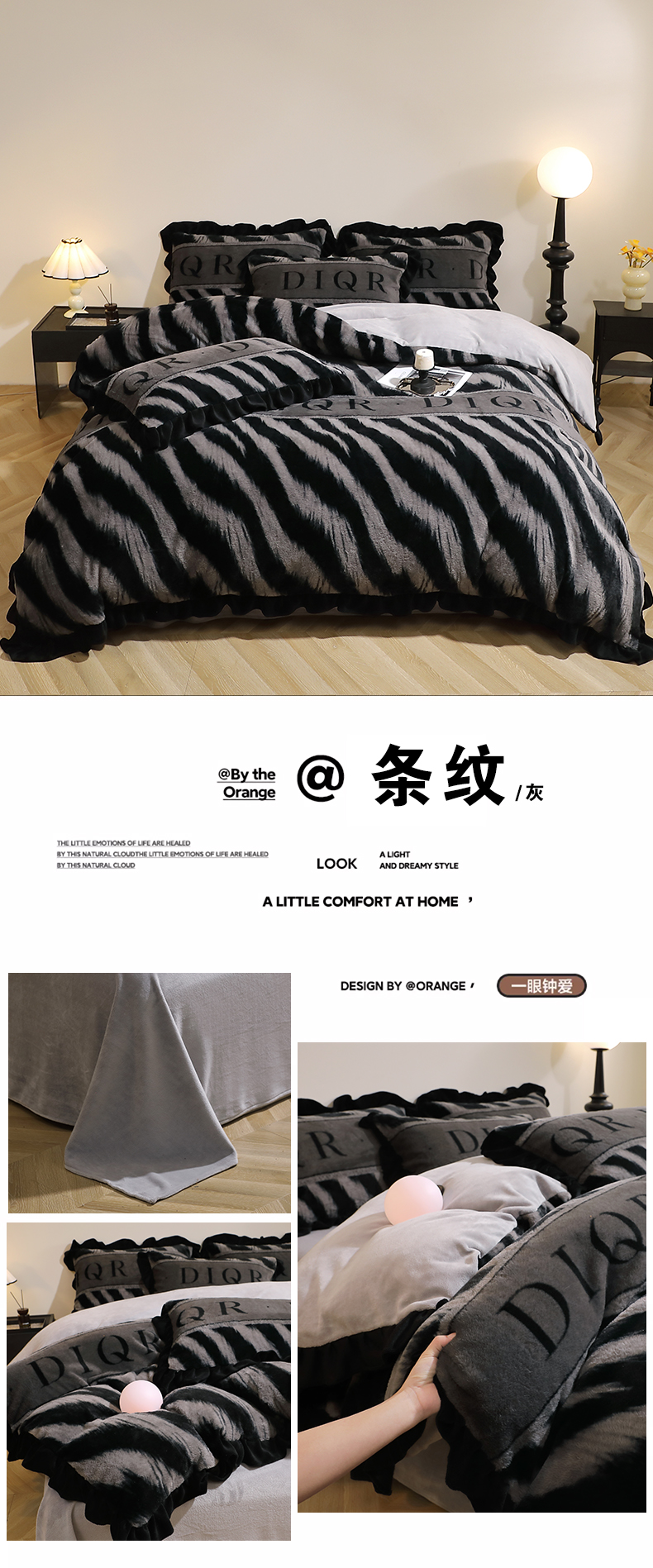 (总)席之家 2025新款韩版黑色花边美拉德系加厚皮草兔毛绒四件套,蝶舞,豹纹 灰,豹纹 咖,粉黛,花笺,极简 灰,极简 咖,觅影,条纹