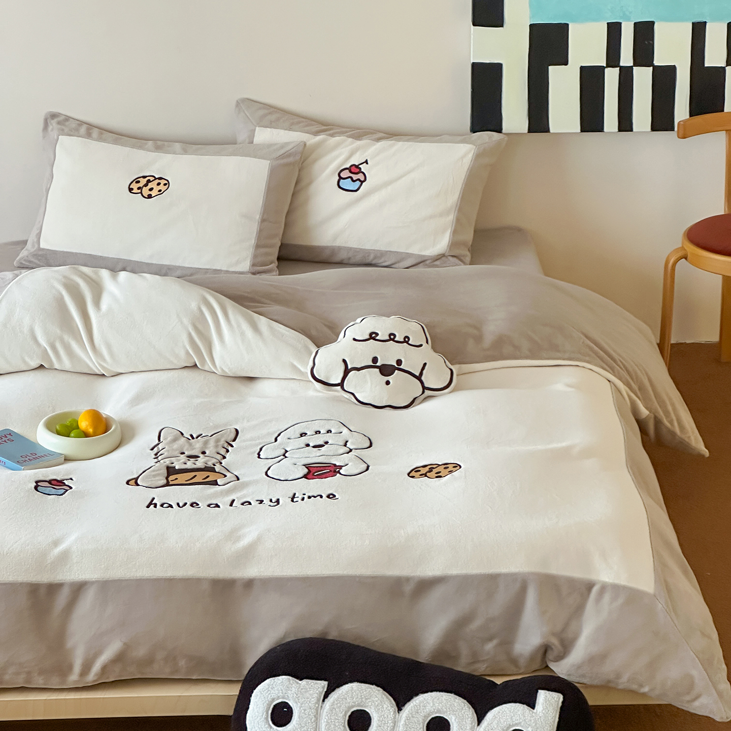 爱丽丝 2025新款230克全消光牛奶绒贴布系列四件套-好朋友 奶茶棕