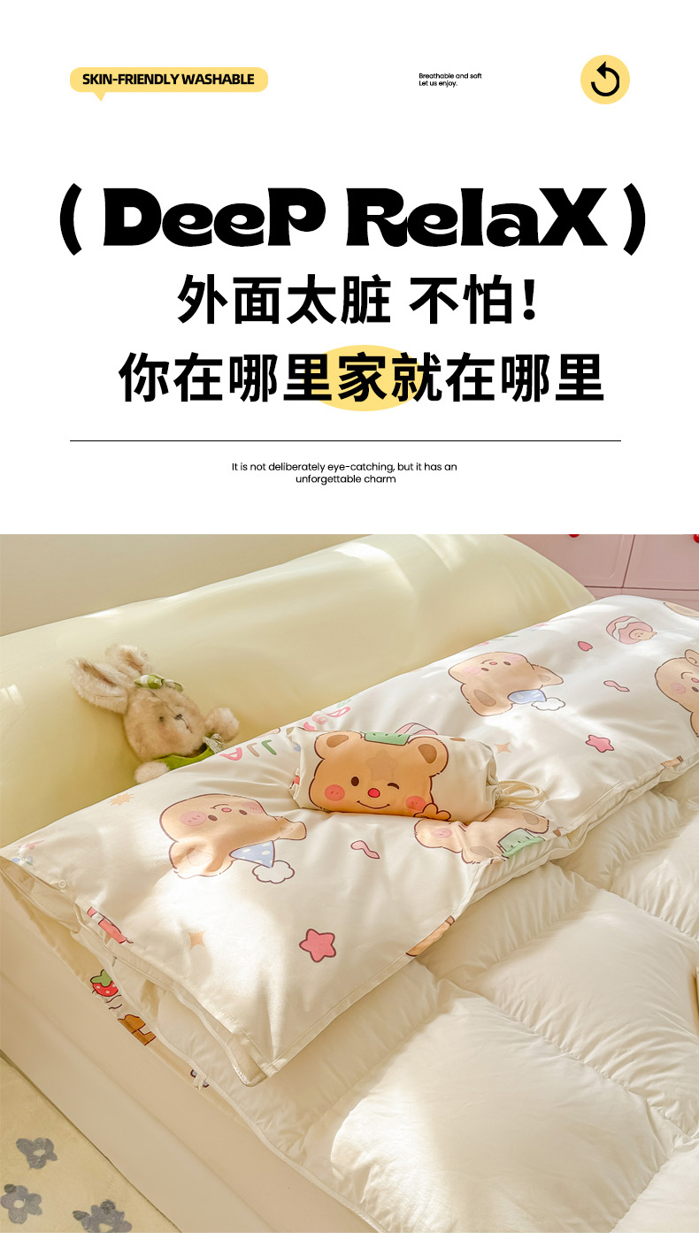 商品名称:柒星睡袋 2025新款新升级mini收纳袋印花系列隔脏睡袋 萌宠乐园