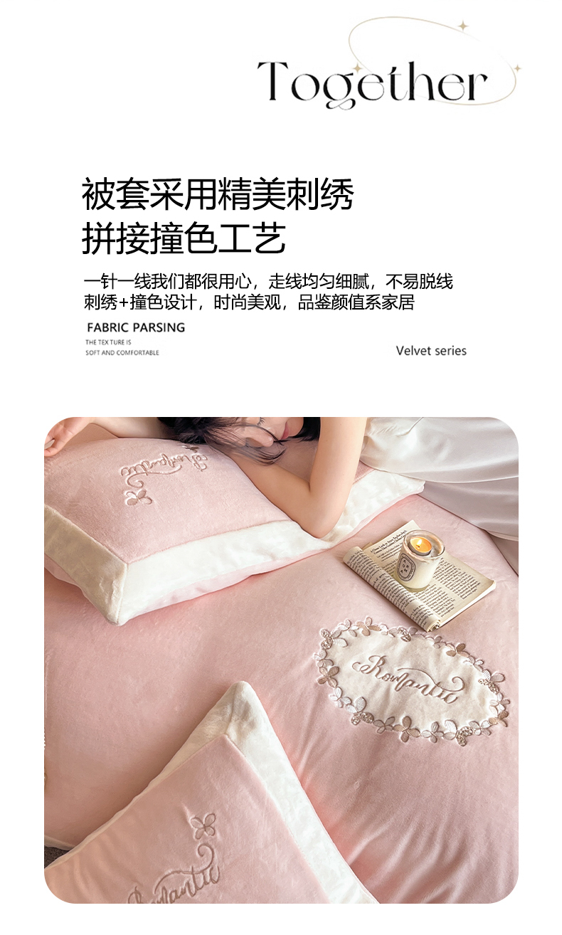 (总)子曰 2025新款高克重牛奶绒轻奢刺绣撞色拼接工艺款四件套-安娜,安娜-粉,安娜-灰,安娜-橘,安娜-绿,安娜-紫